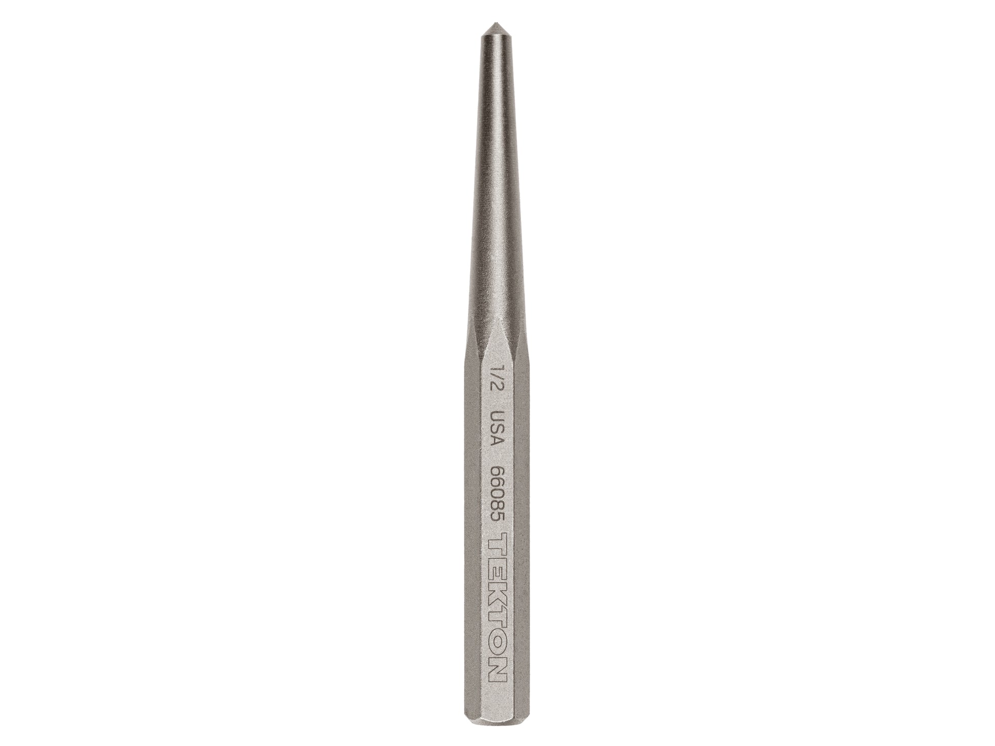Tekton center punches can be used to mark a center point. These punches are machined to precise tolerances and are designed to mark an exact starting spot for drilling on the workpiece. The punches have a sharp point and a tapered shaft. Each punch is individually heat treated to harden and strengthen the tip while maintaining the soft temper of the striking end. The striking end absorbs hammer blows without chipping. Tekton center punches are made from 5160 high carbon steel and finished with a dry, rust-preventative coating. They're also marked with a high-visibility laser marking. All Tekton punches and chisels are made in the USA.