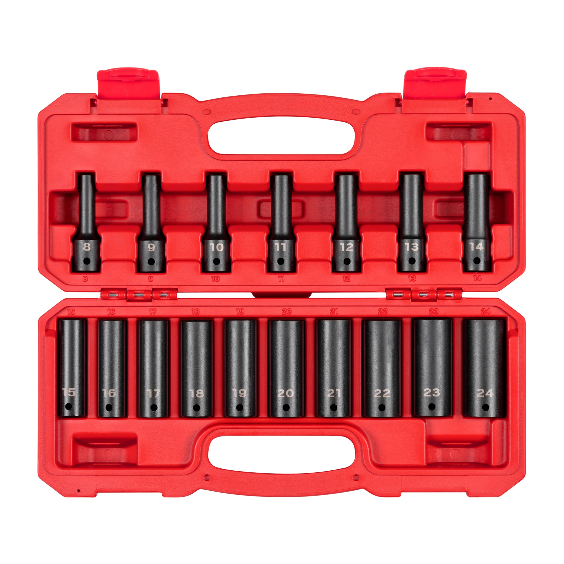 1/2 Inch Drive Deep 12-Point Impact Socket Set with Case, 17-Piece (8 - 24 mm)