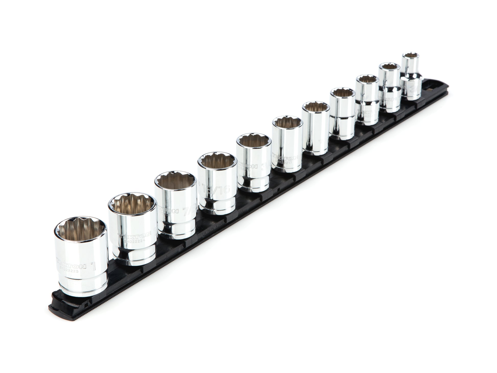 1/2 Inch Drive Shallow 12-Point Socket Set with Rail, 11-Piece (3/8 - 1 in.)
