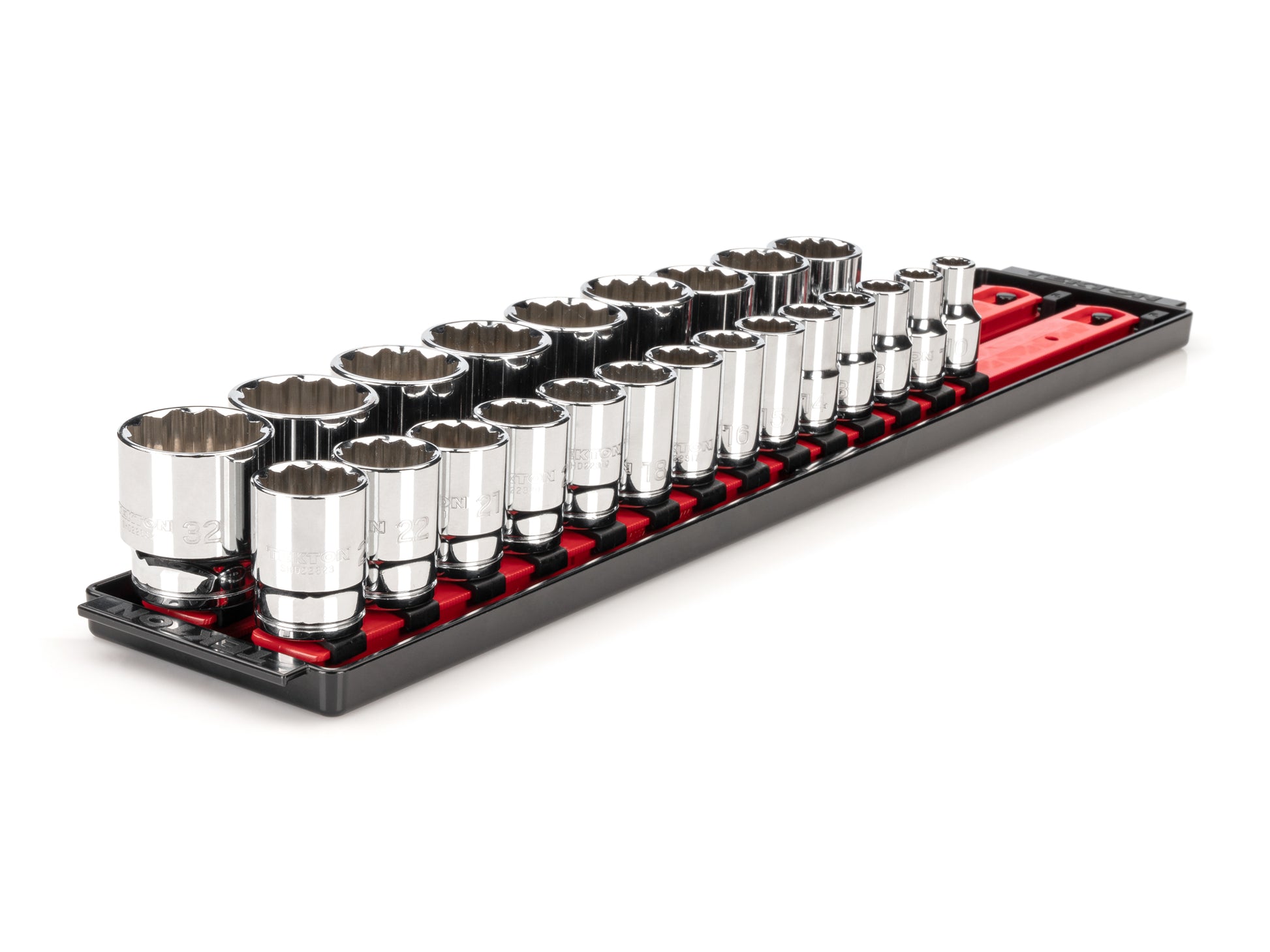 1/2 Inch Drive Shallow 12-Point Socket Set with Rails and Tray, 23-Piece (10 - 32 mm)