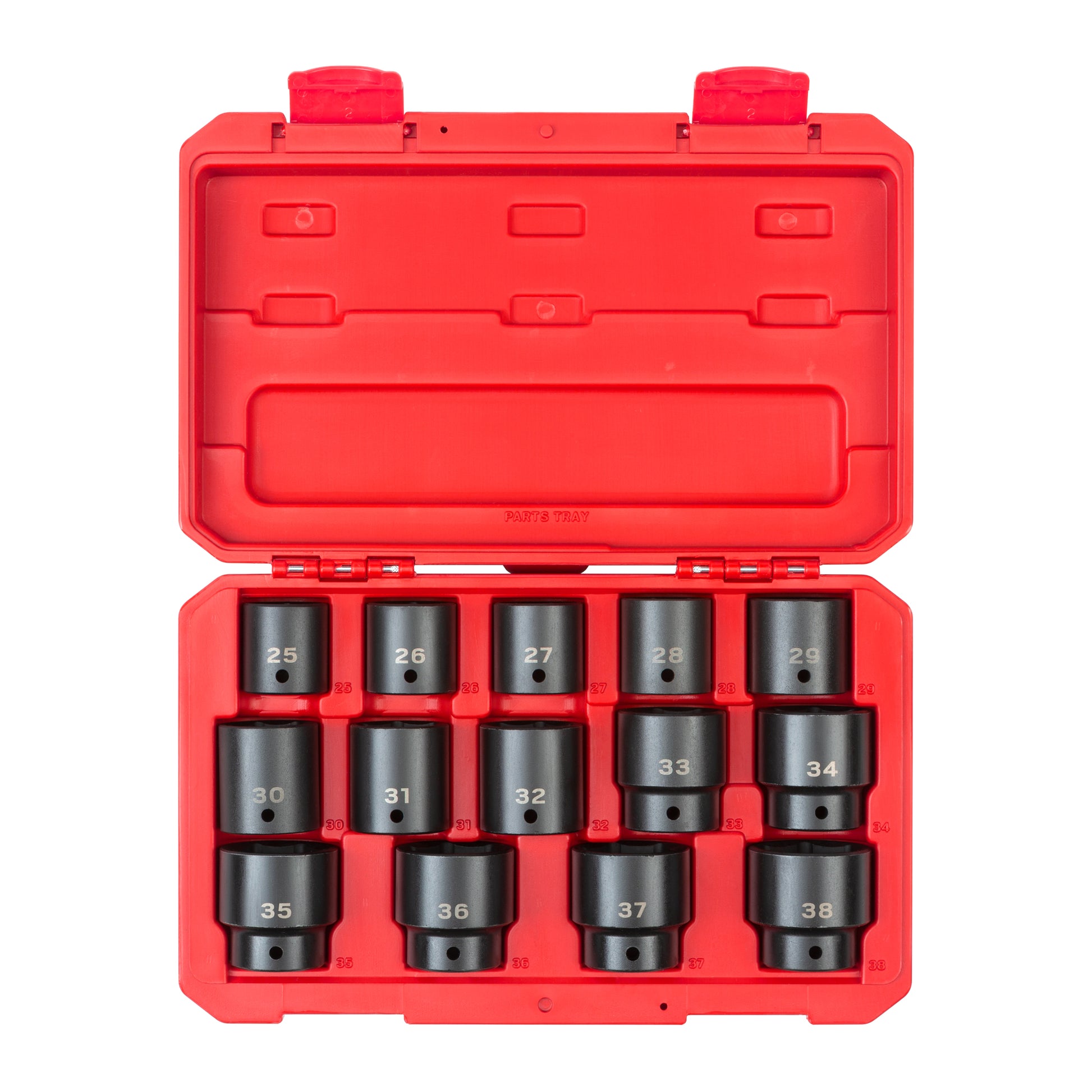 1/2 Inch Drive Shallow 6-Point Impact Socket Set with Case, 14-Piece (25 - 38 mm)