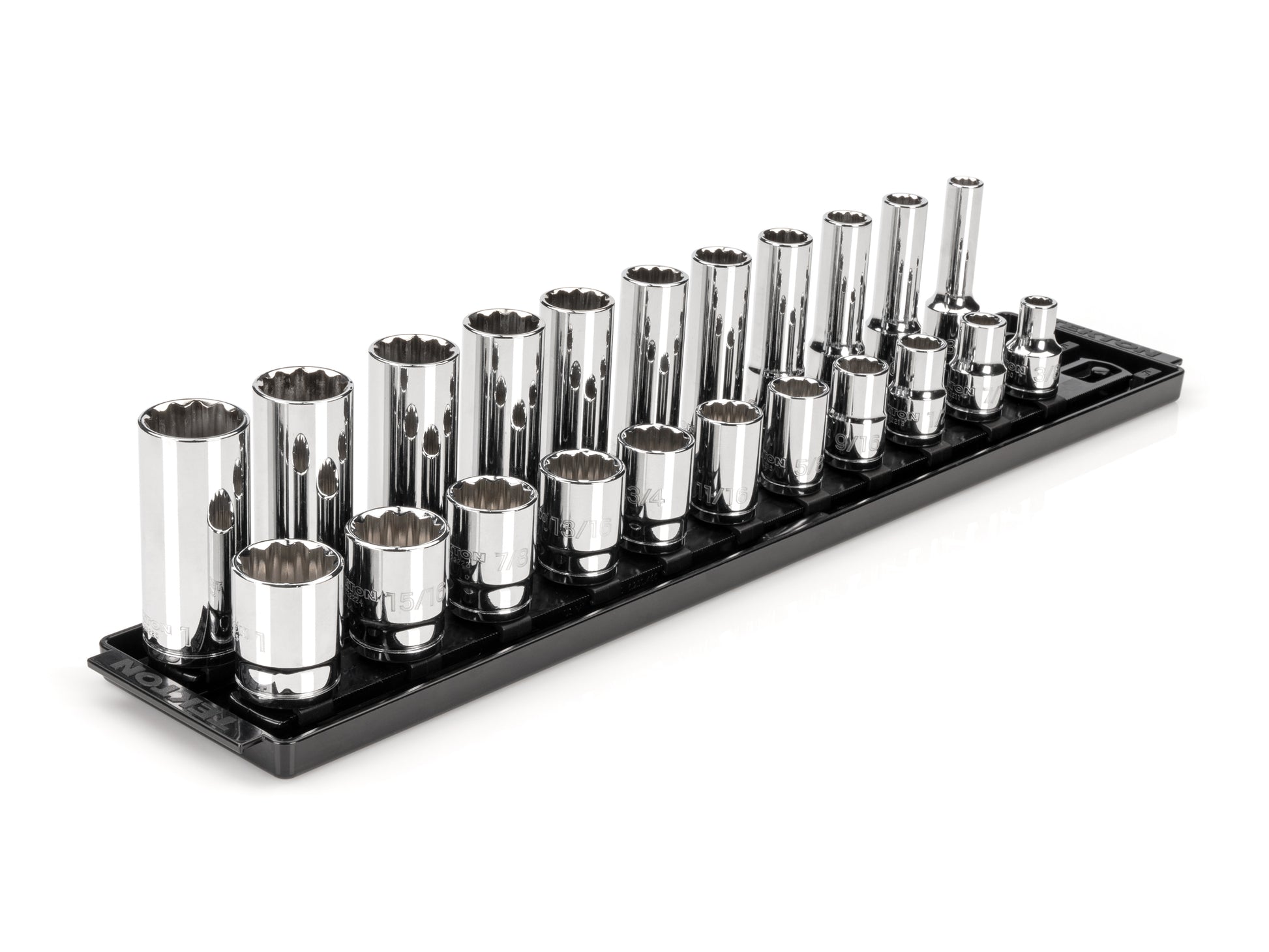 1/2 Inch Drive Shallow and Deep 12-Point Socket Set with Rails and Tray, 22-Piece (3/8 - 1 in.)