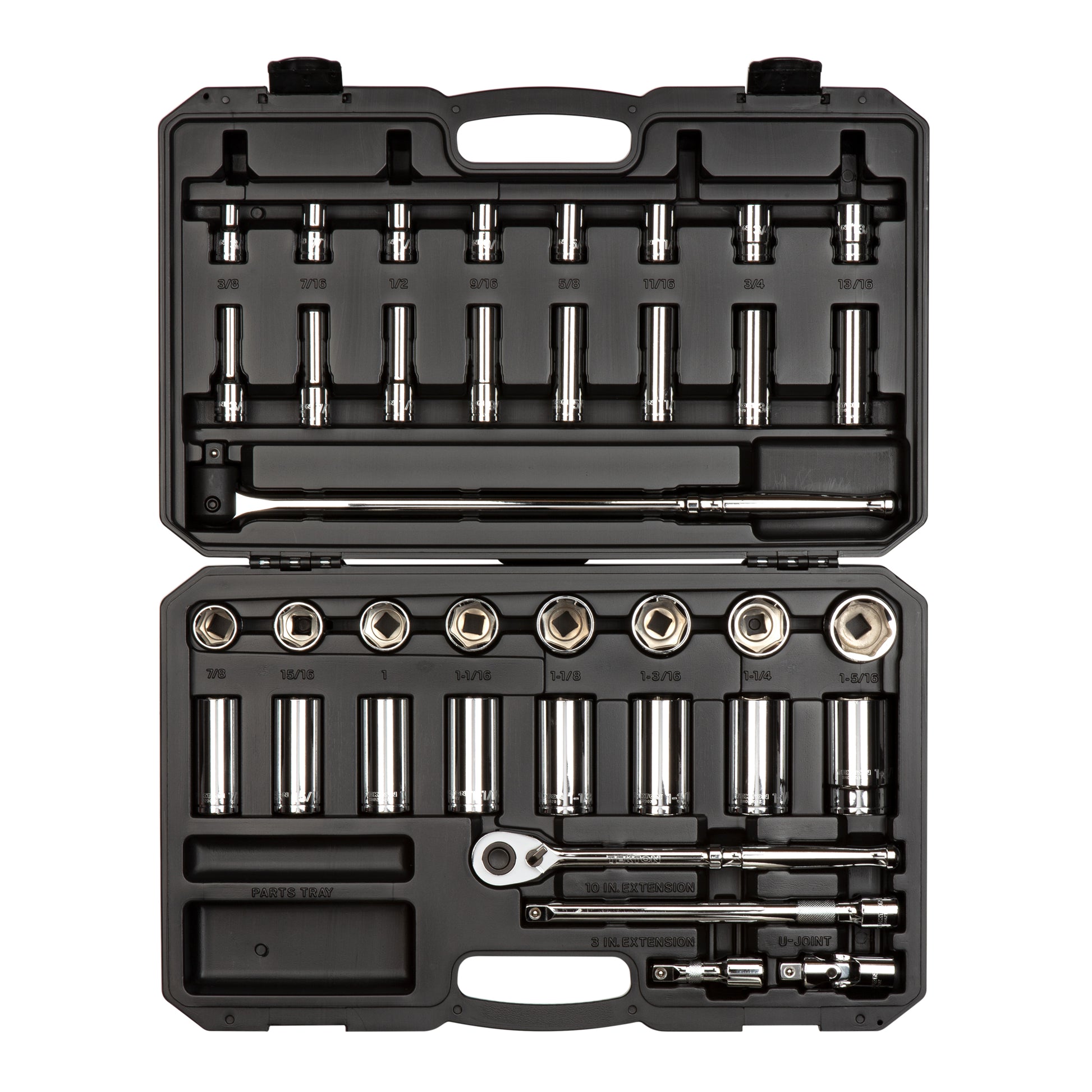 1/2 Inch Drive Shallow and Deep 6-Point Socket and Ratchet Set with Case, 37-Piece (3/8 - 1-5/16 in.)