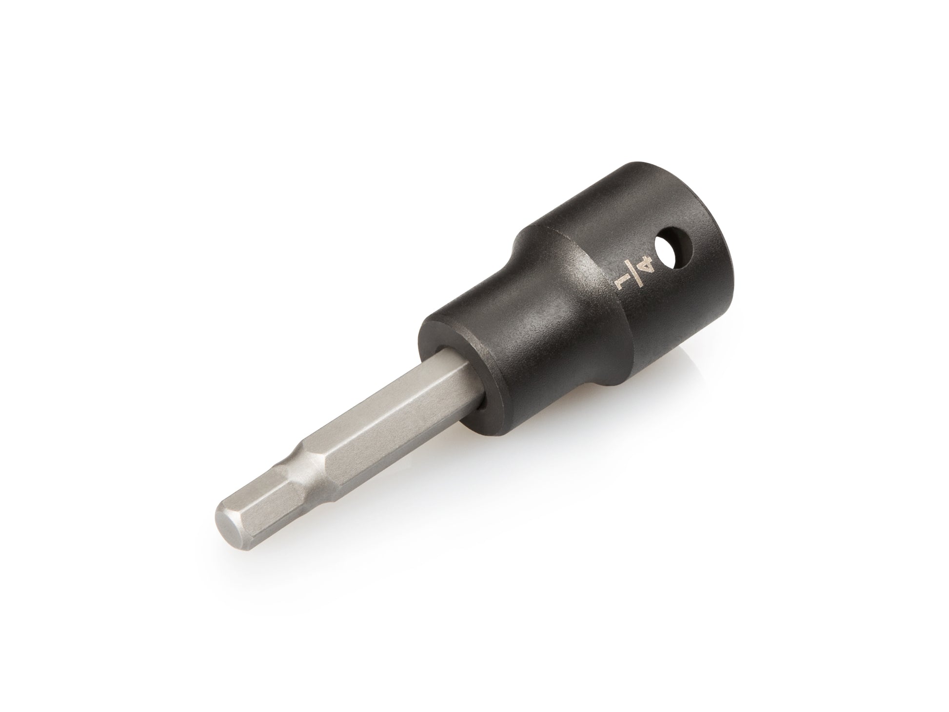 • Size is marked both with a high-visibility laser marking and a permanent stamped marking that won't wear off • 6-sided hexagonal S2 steel bit tip is machined to precise tolerances for an exact fit with hex fasteners • Two-piece design allows bit and socket to be optimized separately, for a more durable tool than traditional one-piece designs • Drive end is made of 4140 chromium-molybdenum (Cr-Mo) steel and properly heat-treated for use on impact wrenches • Detent pin hole on one side