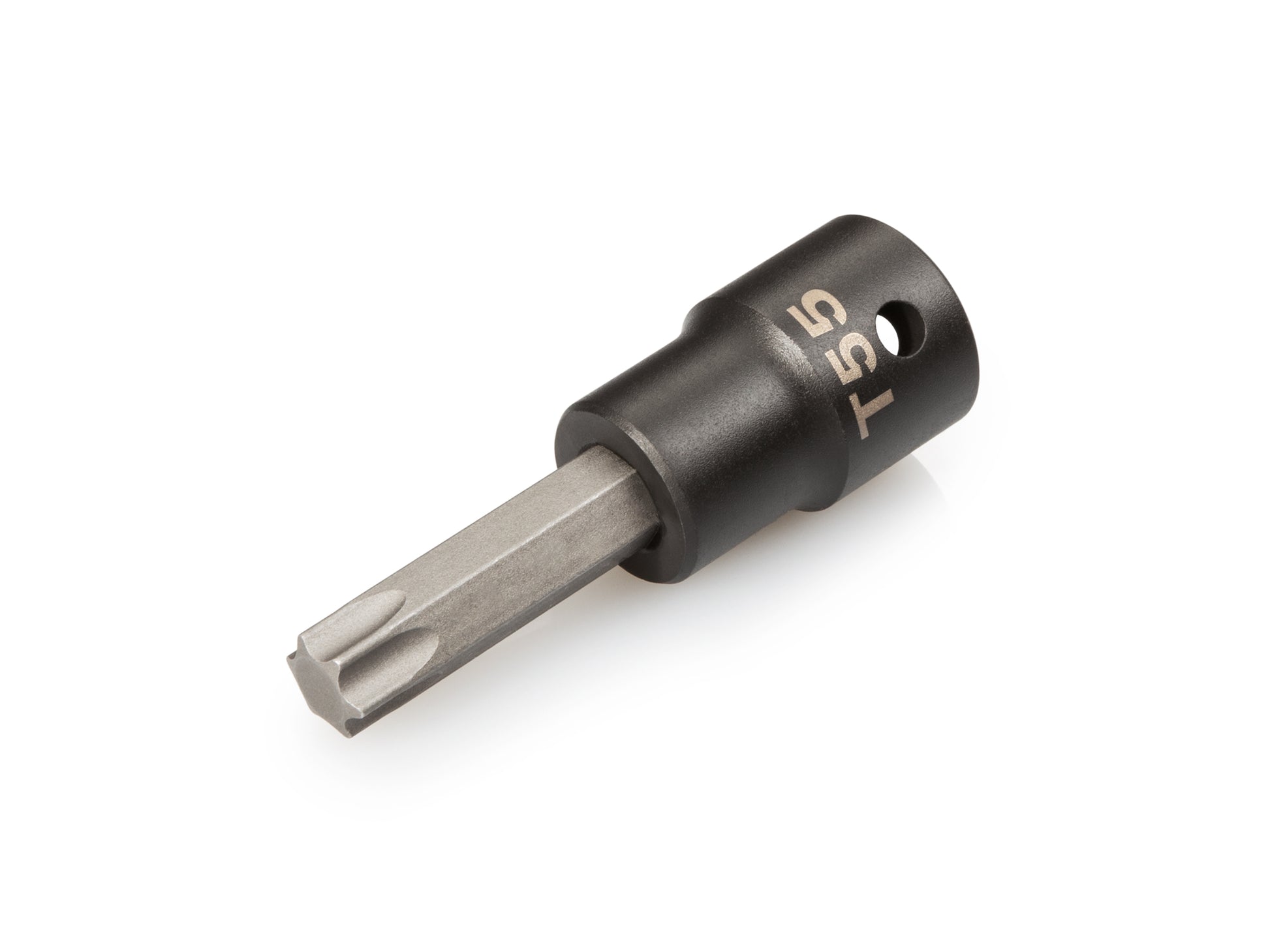 • Size is marked both with a high-visibility laser marking and a permanent stamped marking that won't wear off • Star-shaped Torx S2 steel bit tip has 6-lobes machined to precise tolerances for an exact, high-torque fit that resists camming out • Two-piece design allows bit and socket to be optimized separately, for a more durable tool than traditional one-piece designs • Made of 4140 chromium-molybdenum (Cr-Mo) steel and properly heat-treated for use on impact wrenches • Detent pin hole on one side allows the user to choose whether to engage a pin