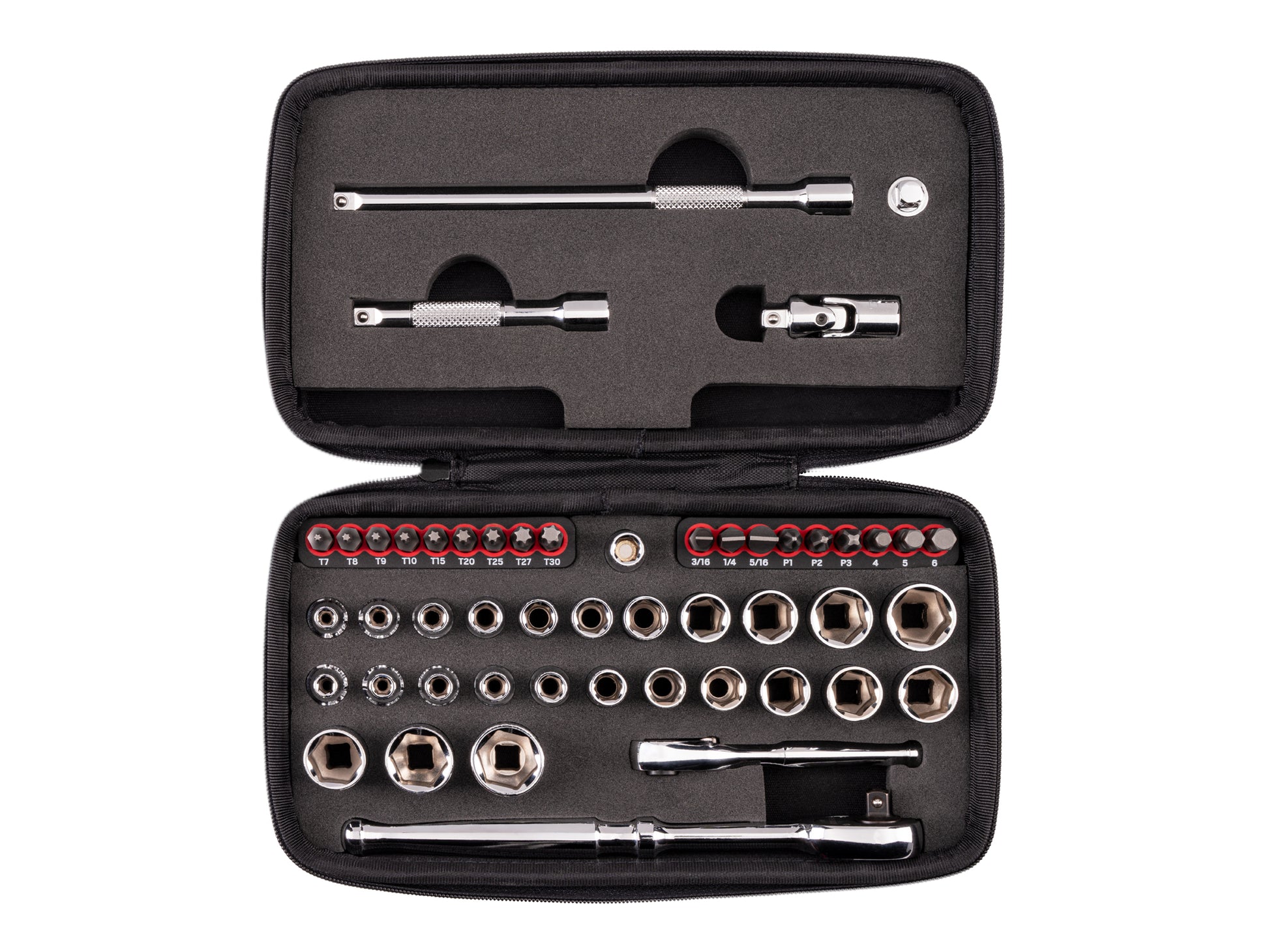 • Accessories – Includes 1/4 inch drive universal joint, magnetic hex bit holder, and 3/4, 3, and 6 inch extensions
