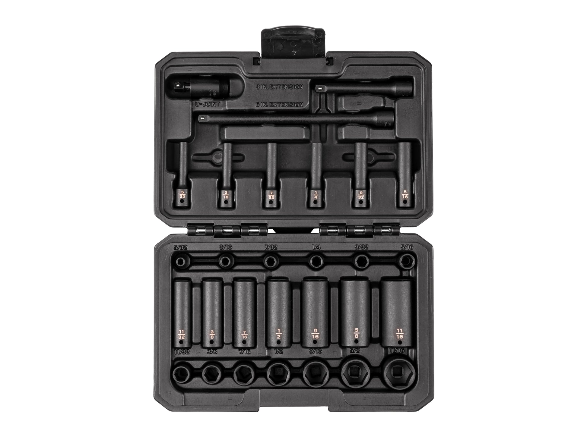 1/4 Inch Drive Shallow 6-Point Impact Socket Set with Case, 29-Piece (5/32 - 11/16 in.)