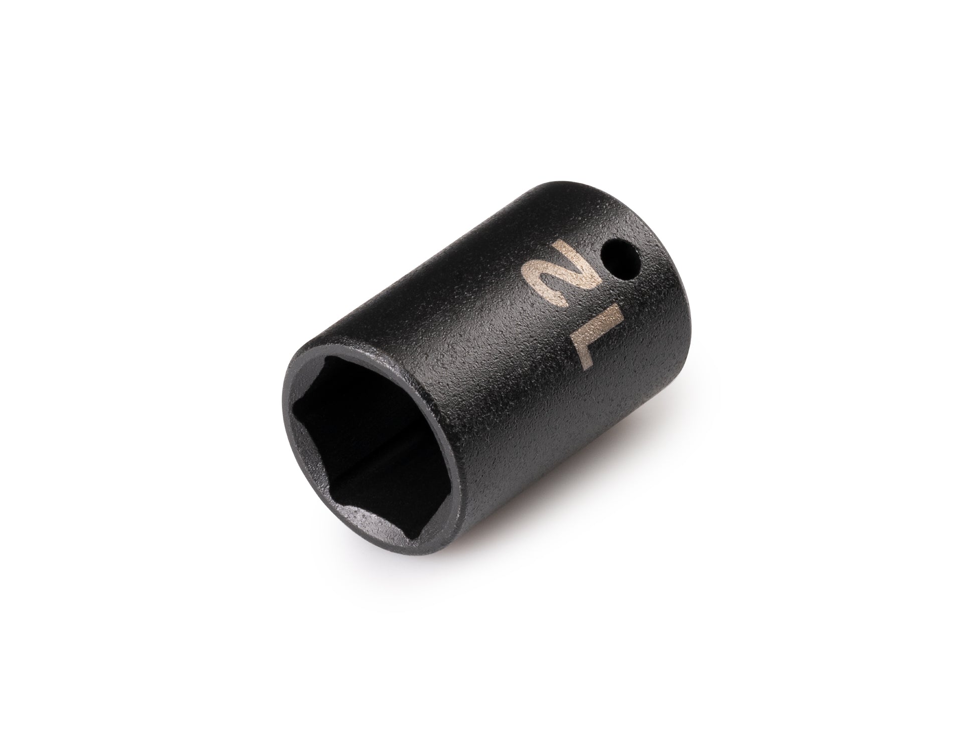 Tekton shallow impact sockets have two size markings—both a high-visibility laser marking and a permanent stamped marking. The interior well of the socket extends fully into the socket, which allows for better fastener engagement in more situations. Each socket works with both friction ring and detent pin anvils. Smooth walls without grooves support friction ring engagement, and a detent pin hole on one side allows you to decide whether to engage the pin. Radiused corners on the socket prevent fastener round-off by applying force to a fastener's flat sides, rather than its corners. Part by part, we choose the best combination of steel alloys, heat treating specifications, and forming processes to meet the highest performance requirements. This socket has a corrosion-resistant manganese phosphate coating.