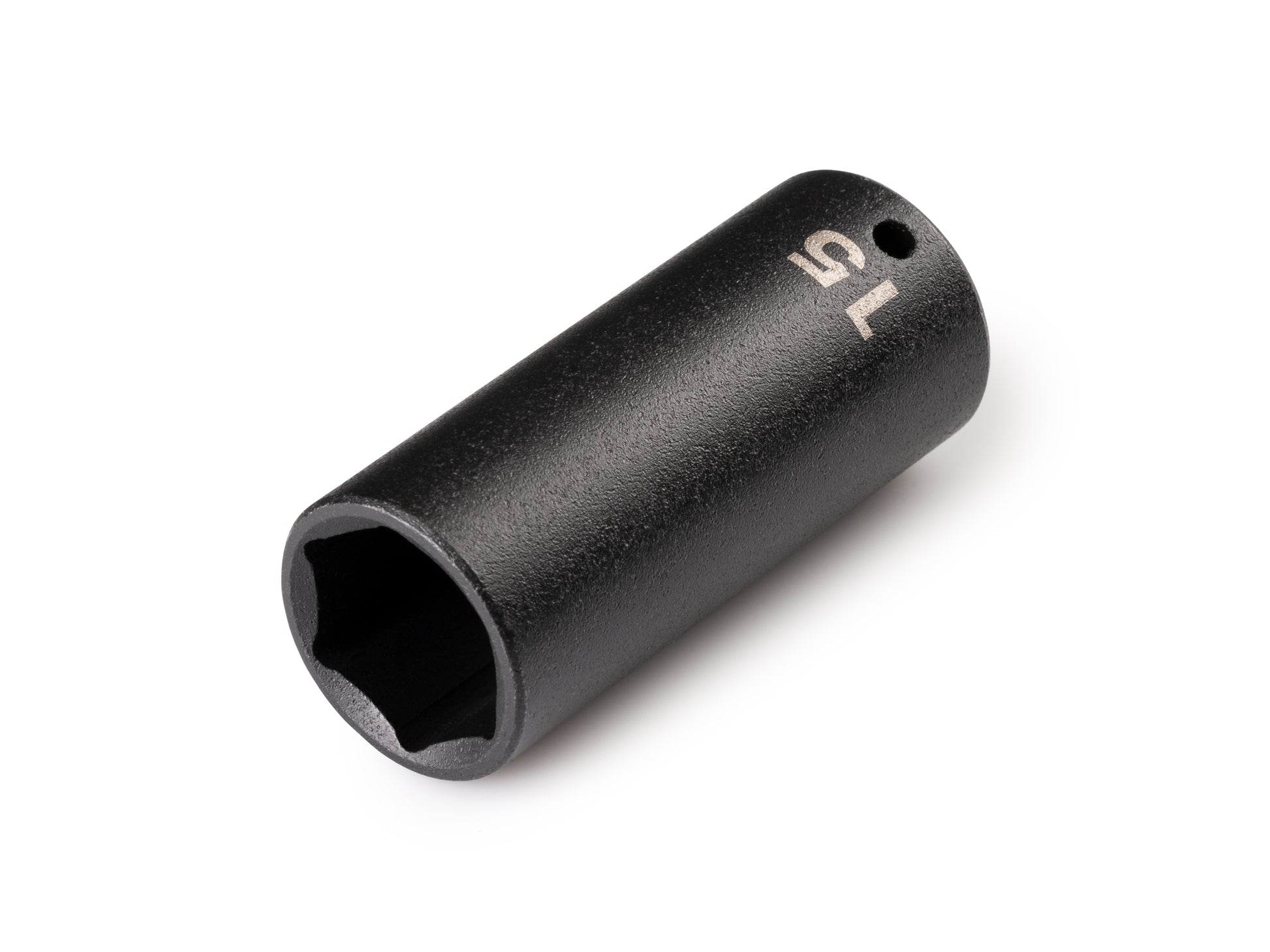 Tekton deep impact sockets have two size markings—both a high-visibility laser marking and a permanent stamped marking. The interior well of the socket extends fully into the socket, which allows for better fastener engagement in more situations. Each socket works with both friction ring and detent pin anvils. Smooth walls without grooves support friction ring engagement, and a detent pin hole on one side allows you to decide whether to engage the pin. Radiused corners on the socket prevent fastener round-off by applying force to a fastener's flat sides, rather than its corners. Part by part, we choose the best combination of steel alloys, heat treating specifications, and forming processes to meet the highest performance requirements. This socket has a corrosion-resistant manganese phosphate coating.