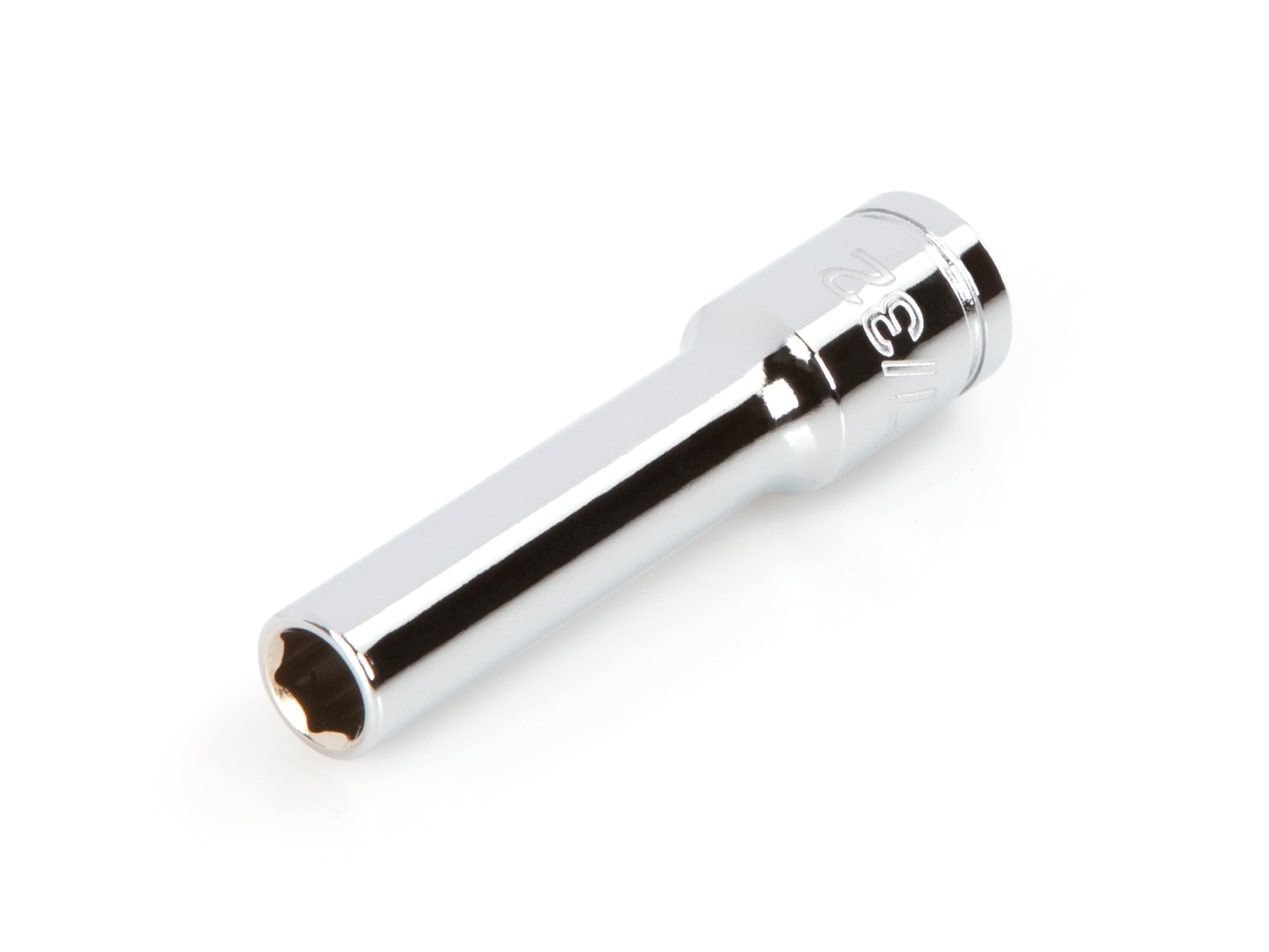 Tekton deep 6-point sockets are ideal for working with hex-shaped fasteners. They're designed to grip the sides and not the corners of the fastener heads, which prevents round-off. Their extended length allows the deep socket to fit over long fasteners and reach into recessed areas. The large, die-stamped markings are permanently impressed into the material and optimized for readability.