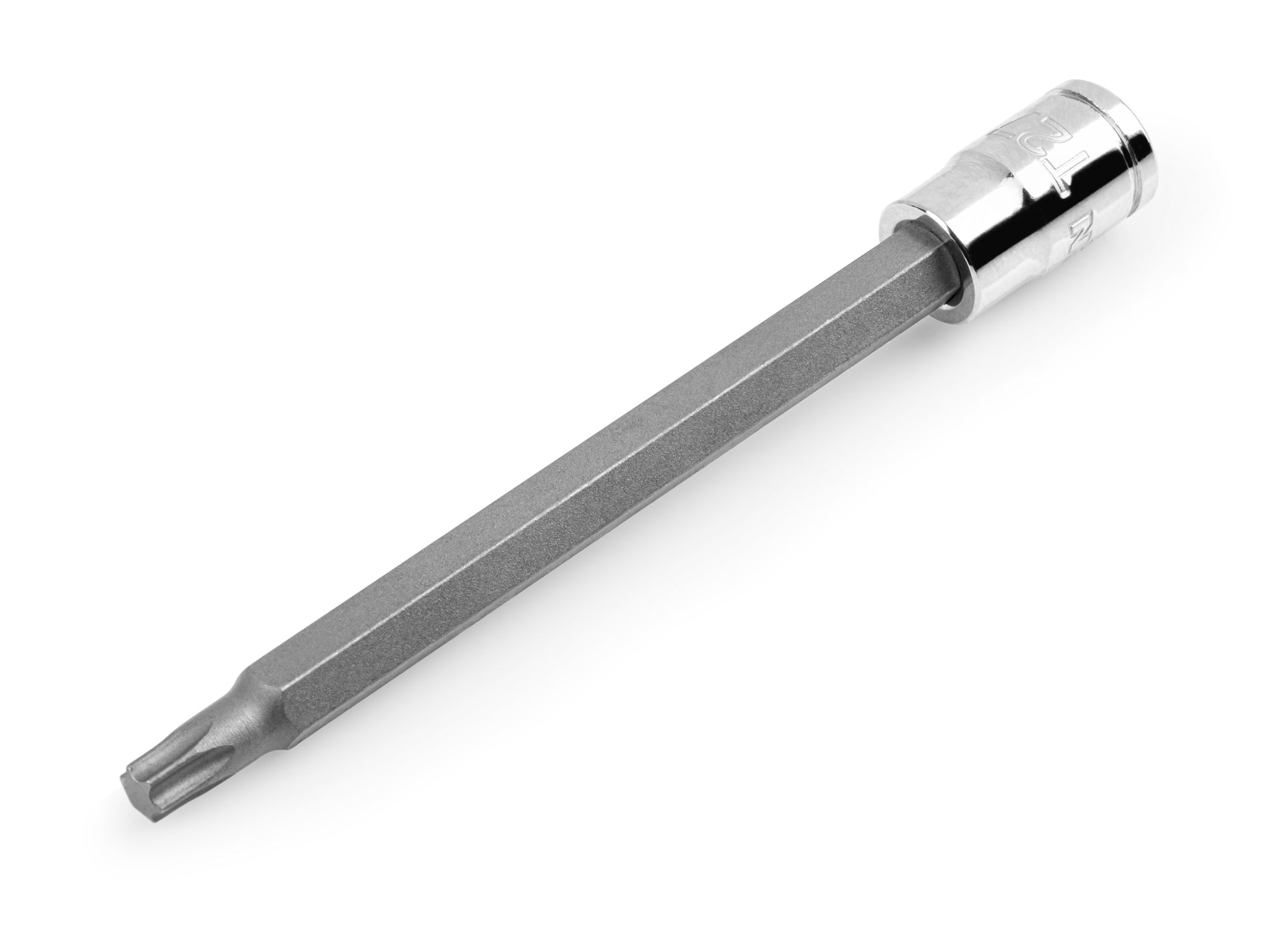 Each Tekton 1/4 inch drive long bit socket has slightly chamfered edges and a smooth top face to optimize engagement with fasteners. The bits have 2.4 more inches of reach compared to our standard length bit sockets, allowing you to reach deep into narrow, recessed areas. The bits are pressed directly into the socket for a permanent connection. The carefully-controlled process ensures bits are exceptionally straight, and the tightly-mated fit results in a bit that won't loosen over time or under stress. The socket is made from 6140 chromium-vanadium (Cr-V) steel that's heat-treated to 40.5–47.5 HRC. The chrome-plated exterior is highly corrosion-resistant and wipes clean to a mirror finish. The S2 steel bit is heat-treated to 57–63 HRC to resist shocks and maintain geometry under stress. Large, stamped markings are permanently impressed into the material by a roll-stamp die and are as large as possible while still being readable along the socket's curved surface. Detent grooves and beveled edges provide a smooth and secure connection with the drive tool.