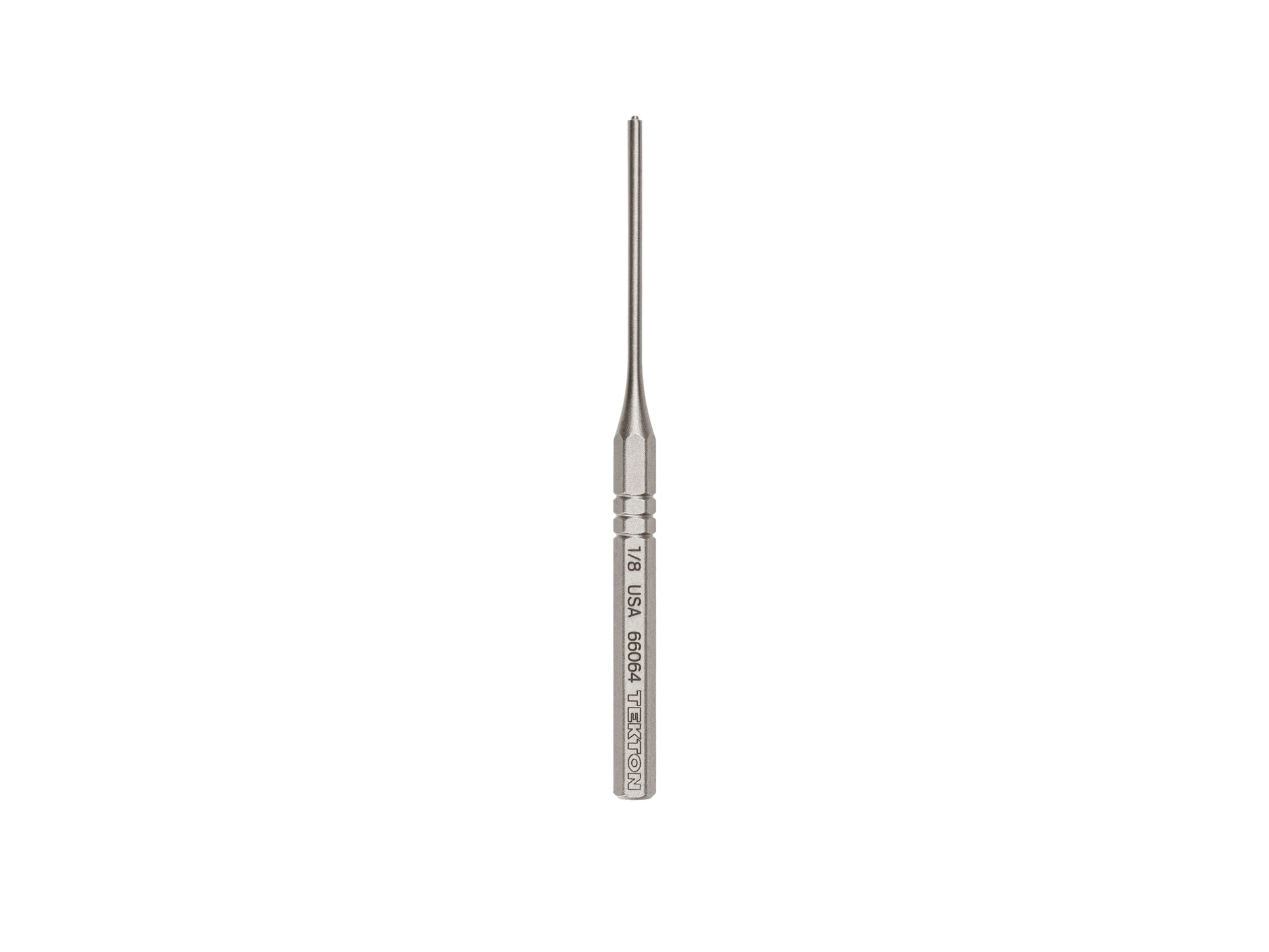 Tekton roll pin punches can be used to drive out or insert hollow pins. The long, straight punch is machined to precise tolerances and has a guide ball on the tip to drive out or insert hollow pins without damaging them or the workpiece. Each punch is heat treated to harden and strengthen the tip while maintaining the soft temper of the striking end. The striking end absorbs hammer blows without chipping. Tekton pin punches are made from 5160 high carbon steel and finished with a dry, rust-preventative coating. They're also marked with a high-visibility laser marking. All Tekton punches and chisels are made in the USA.