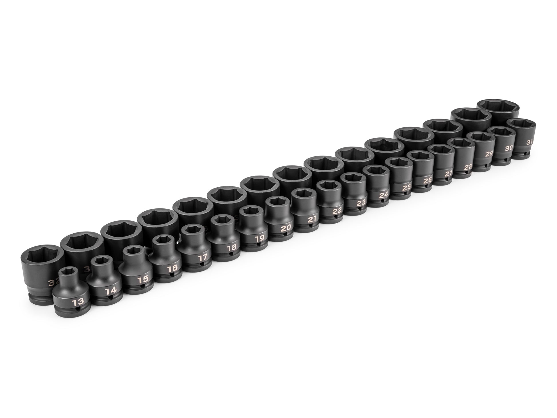 3/4 Inch Drive Shallow 6-Point Impact Socket Set, 34-Piece (13 - 50 mm)
