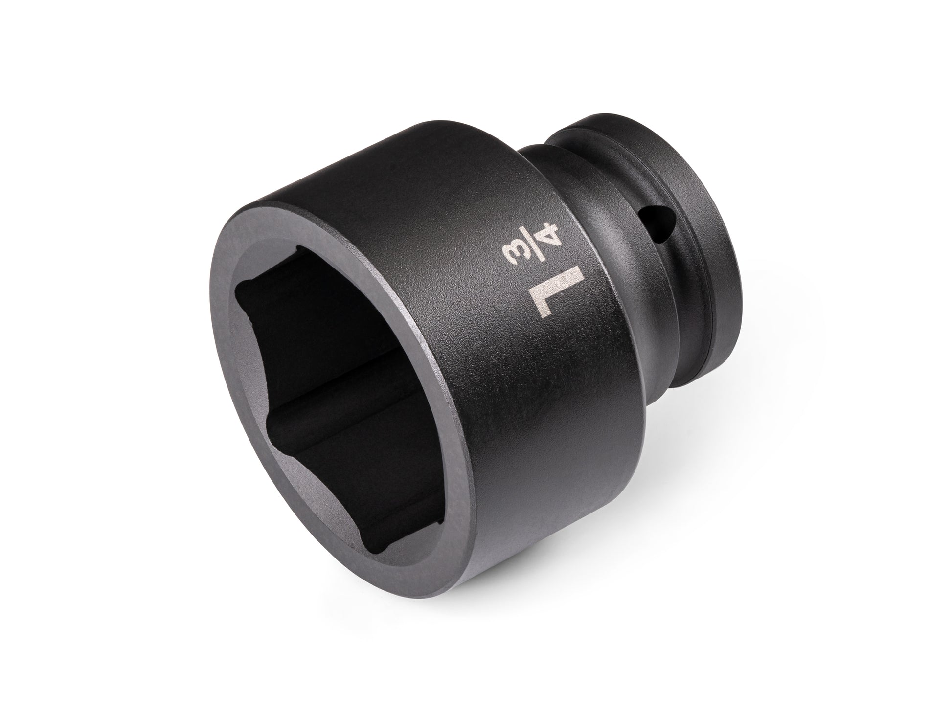 Tekton 3/4 inch drive shallow impact sockets have two size markings: a high-visibility laser marking and a permanent stamped marking. While the overall socket is a shallow length, the interior well extends fully into the socket, which allows for better fastener engagement in more situations. Sockets work with through-hole, friction ring, and detent pin anvils. The ring groove supports use with retaining rings, the smooth walls support use with friction ring anvils, and the through holes support use with pins. Radiused corners prevent fastener round-off by applying force to a fastener's flat sides, rather than its corners. All of our 3/4 inch drive sockets, extensions, adapters, and reducers are made out of 4140 steel and have a corrosion-resistant manganese phosphate coating.