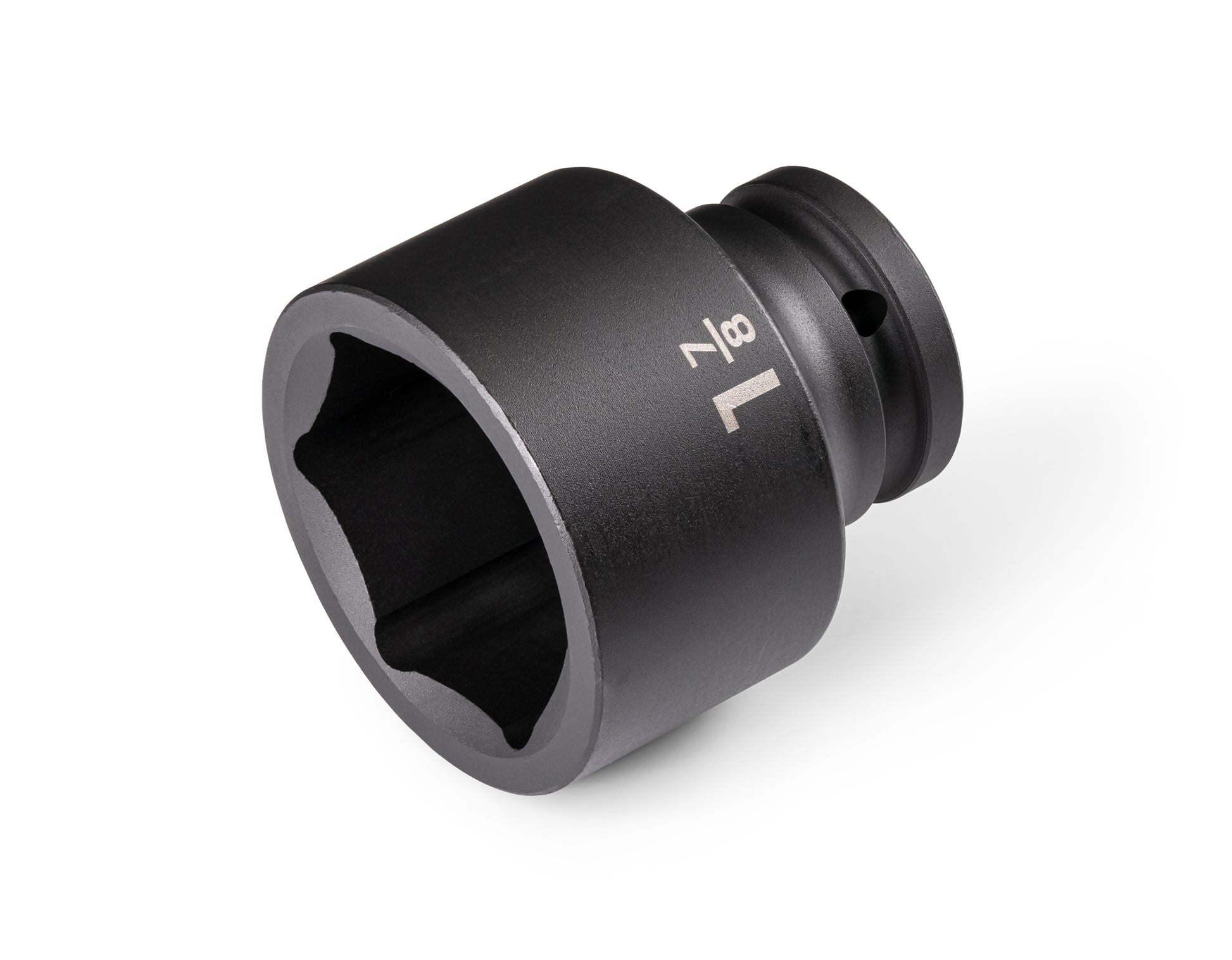 Tekton 3/4 inch drive shallow impact sockets have two size markings: a high-visibility laser marking and a permanent stamped marking. While the overall socket is a shallow length, the interior well extends fully into the socket, which allows for better fastener engagement in more situations. Sockets work with through-hole, friction ring, and detent pin anvils. The ring groove supports use with retaining rings, the smooth walls support use with friction ring anvils, and the through holes support use with pins. Radiused corners prevent fastener round-off by applying force to a fastener's flat sides, rather than its corners. All of our 3/4 inch drive sockets, extensions, adapters, and reducers are made out of 4140 steel and have a corrosion-resistant manganese phosphate coating.
