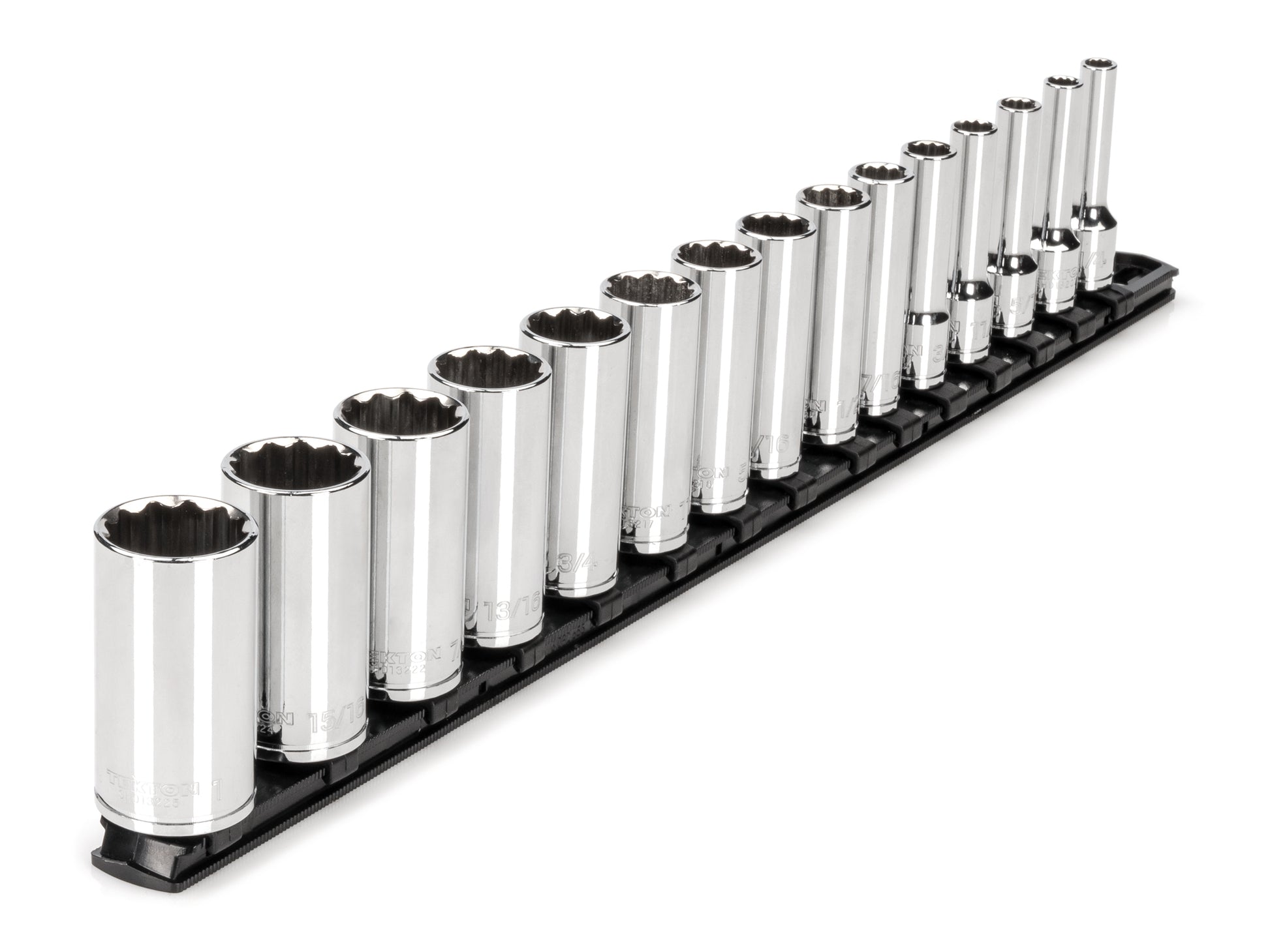 3/8 Inch Drive Deep 12-Point Socket Set with Rail, 15-Piece (1/4 - 1 in.)