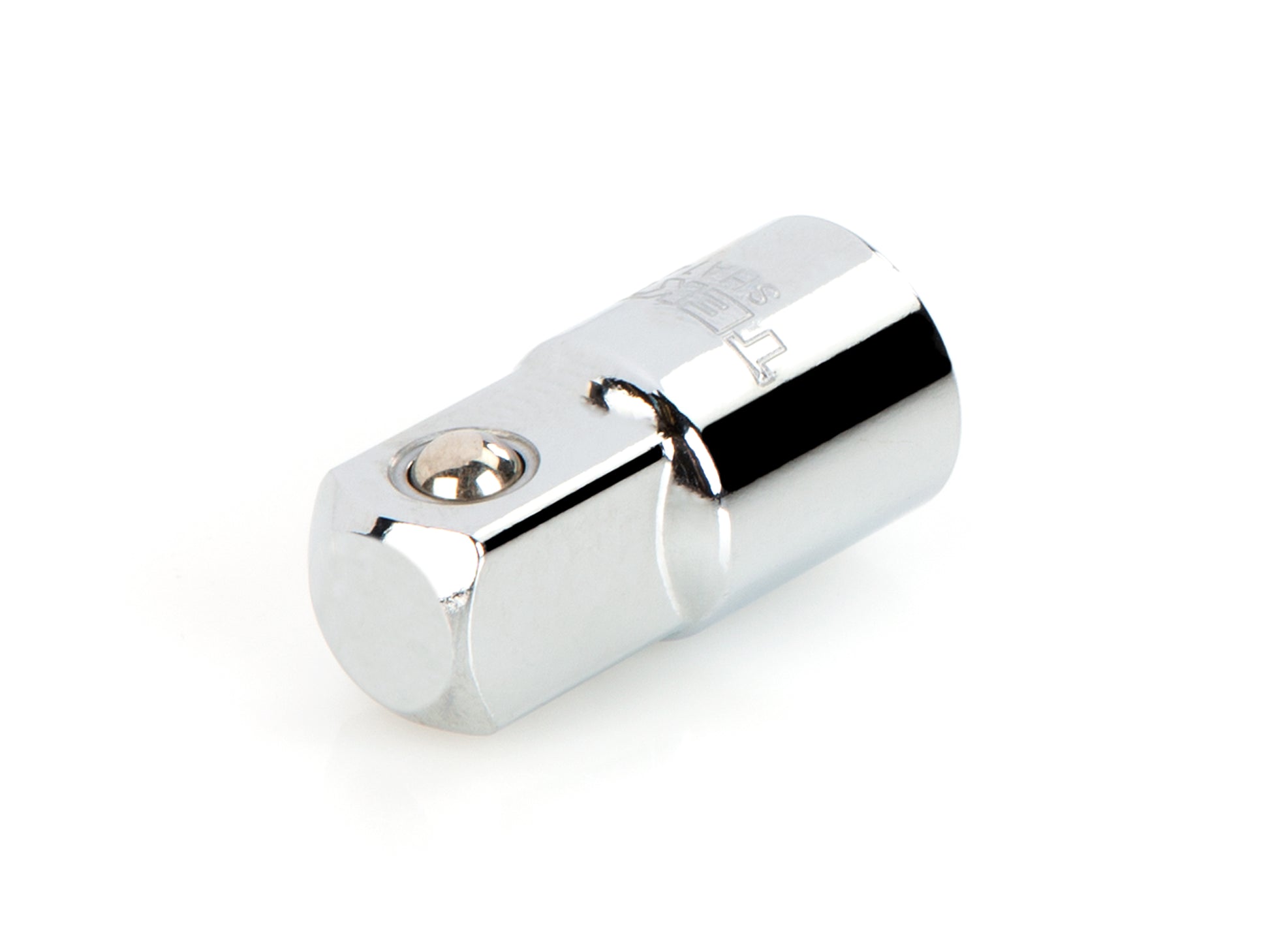 • Connect 3/8 inch drive tools to 1/2 inch drive sockets and accessories to expand your range of available tools • Polished, chrome-plated finish easily wipes clean and is highly resistant to corrosion • Beveled drive end helps guide extension smoothly onto drive tool • Four detent grooves provide a secure connection with the drive tool • Radiused corners inside drive avoid stress concentrations that can cause cracking • A spring-loaded retaining ball latches into sockets and hold them securely in place