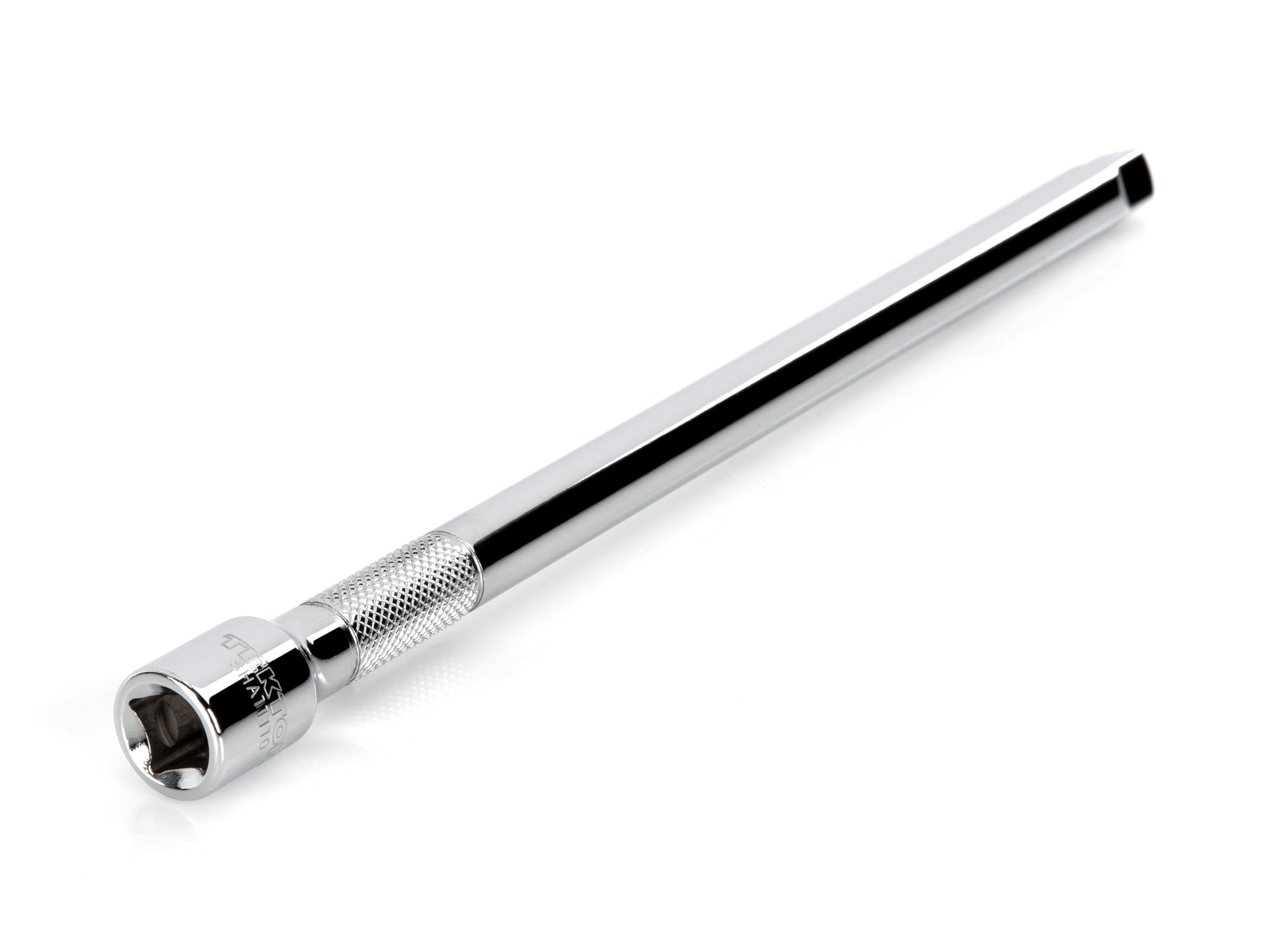 • Knurled band provides grip for starting or turning loosened fasteners with fingertips • Polished, chrome-plated finish easily wipes clean and is highly resistant to corrosion • Beveled drive end helps guide extension smoothly onto drive tool • Four detent grooves offer a secure connection with the drive tool • Radiused corners inside the drive avoid stress concentrations that can cause cracking • Spring-loaded retaining ball latches into sockets and holds them securely in place