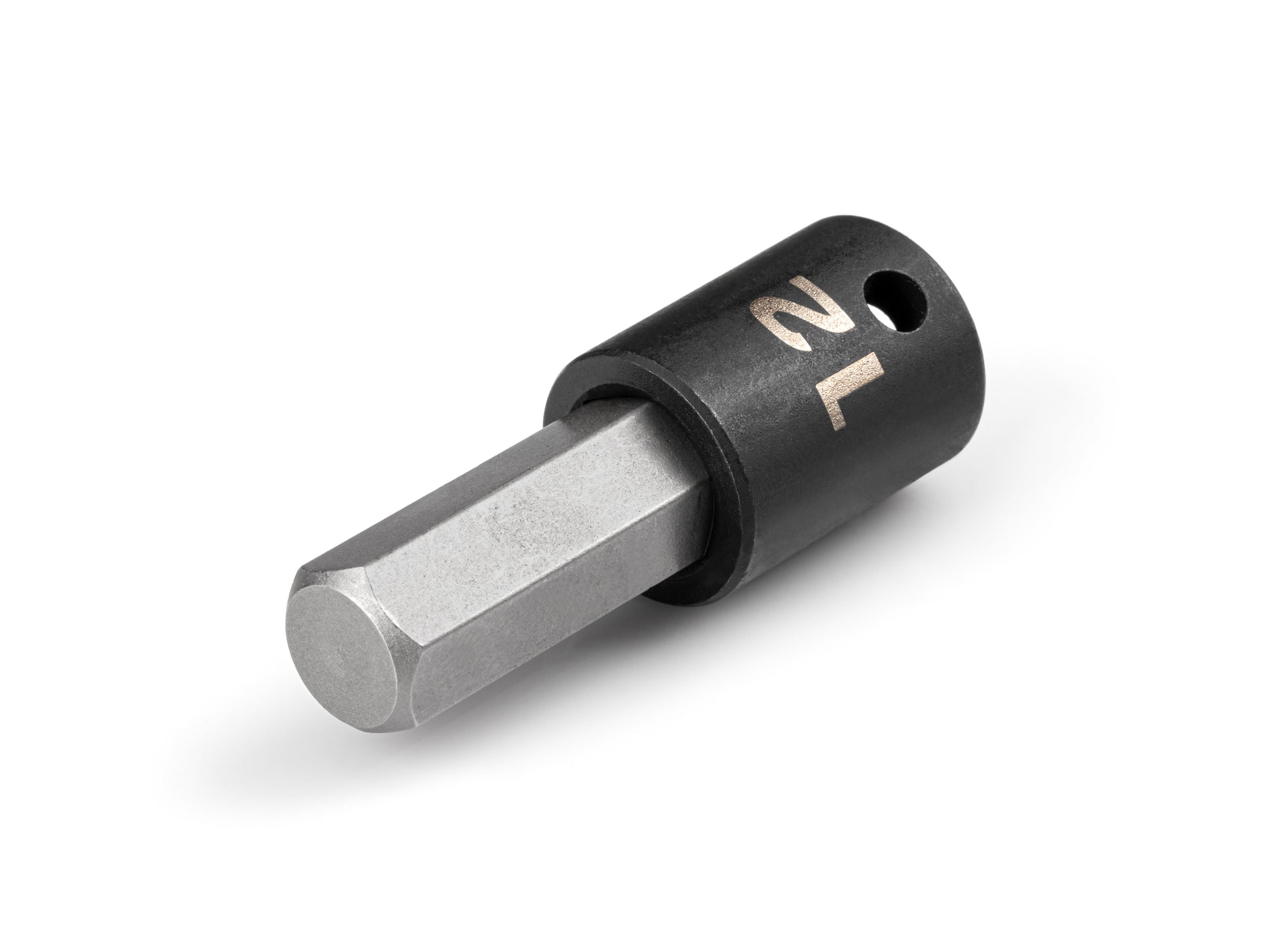 Tekton's two-piece design allows us to optimize the steel alloys, heat treatments, and forming processes for the bit and socket separately, resulting in a tool that's higher performing and more durable than traditional one-piece impact bit sockets. The two pieces are permanently press-fit together and won't loosen over time. The socket is made is made from 6140 chromium-vanadium steel that's heat-treated to 40–47 HRC for use on impact wrenches. The socket is also coated with a manganese phosphate finish to resist corrosion. The bits are made from S2 steel that's heat-treated to a higher hardness (58–62 HRC) to help maintain their geometry under stress. The inside of the socket's drive end has smooth walls with no detent grooves to support engagement with drive tools that use friction ring anvils. A detent pin hole on one side of the drive end also supports engagement with detent pin anvil styles.