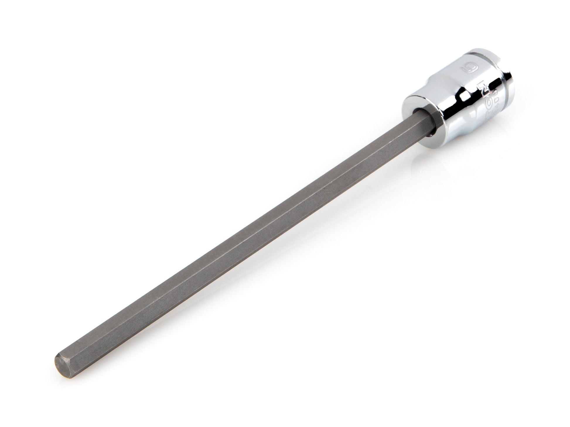 • S2 steel bit is press-fit into the socket for a straight, permanent connection that can't loosen over time • 6-sided hexagonal tip is machined to precise tolerances for an exact fit with hex fasteners • Extra-long bits allow you to reach deep into especially narrow, recessed areas • Large, clear die-stamped size marking is easy to read and can’t wear off • Four detent grooves provide a secure connection with the drive tool and a drilled through-hole allows locking on with retaining pin • Polished, chrome-plated finish easily wipes clean and is highly resistant to corrosion • Beveled inner rim of the socket opening helps guide it smoothly onto fasteners