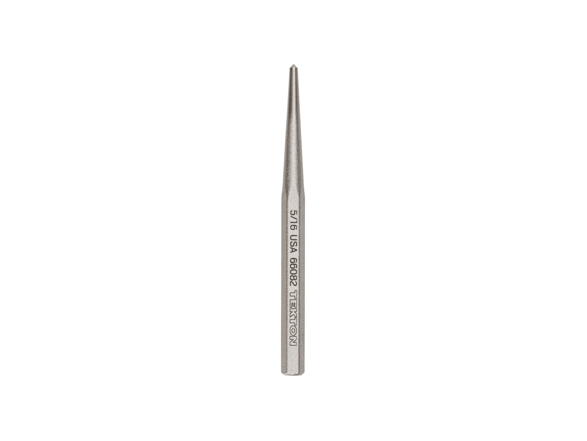 Tekton center punches can be used to mark a center point. These punches are machined to precise tolerances and are designed to mark an exact starting spot for drilling on the workpiece. The punches have a sharp point and a tapered shaft. Each punch is individually heat treated to harden and strengthen the tip while maintaining the soft temper of the striking end. The striking end absorbs hammer blows without chipping. Tekton center punches are made from 5160 high carbon steel and finished with a dry, rust-preventative coating. They're also marked with a high-visibility laser marking. All Tekton punches and chisels are made in the USA.