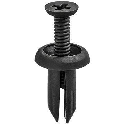 5mmx12mm Black Phillips Screw Type Push-In Retainer w/ Open End, 10mm Head