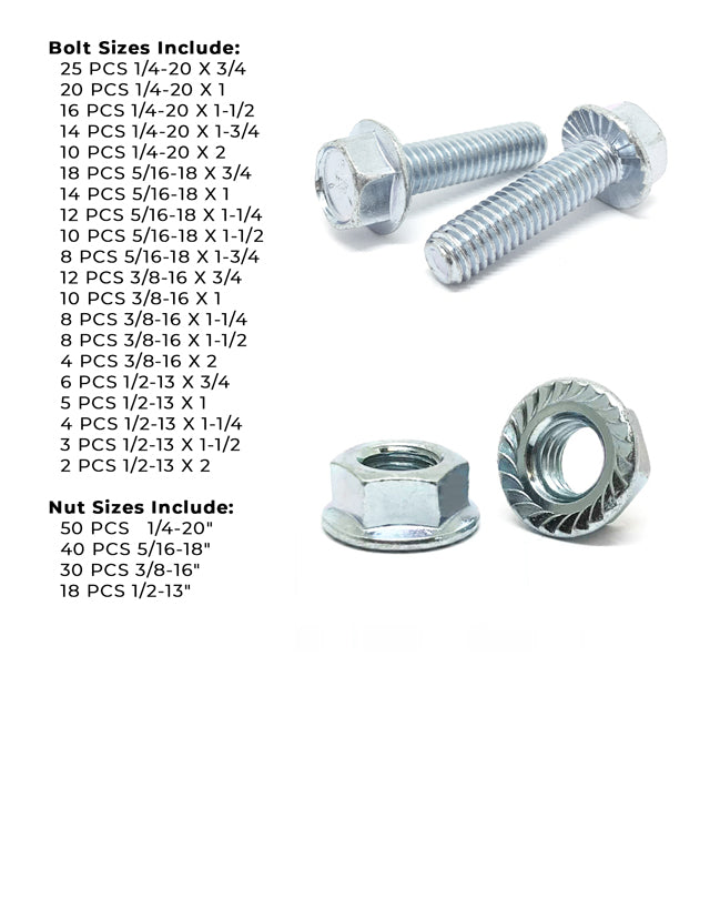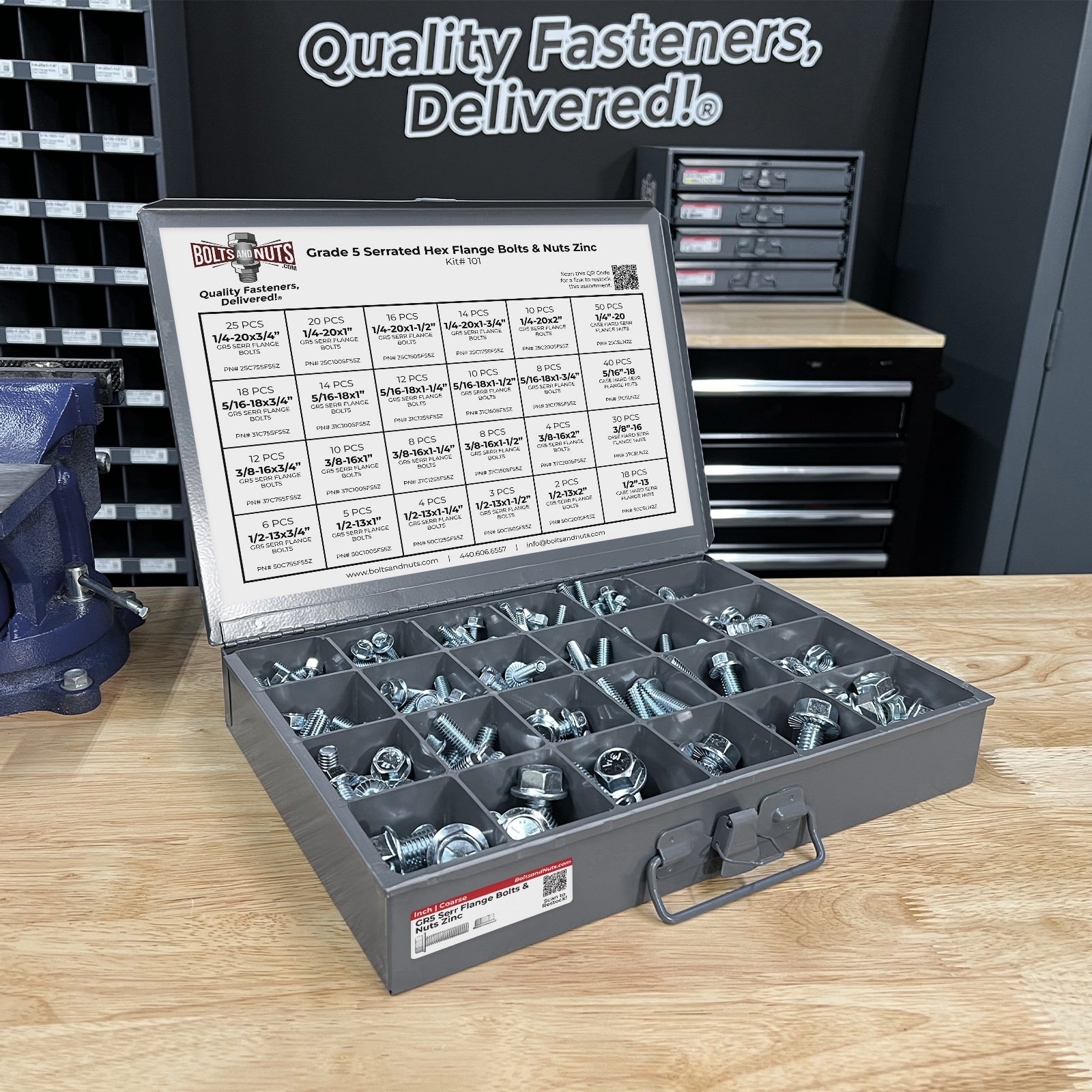 Inch Grade 5 Serrated Hex Flange Bolts & Lock Nuts Assortment - 348 PCS