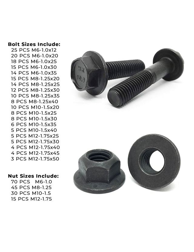 Metric Class 10.9 Hex Flange Frame Bolts & Nuts Assortment Phos & Oil - 370 PCS