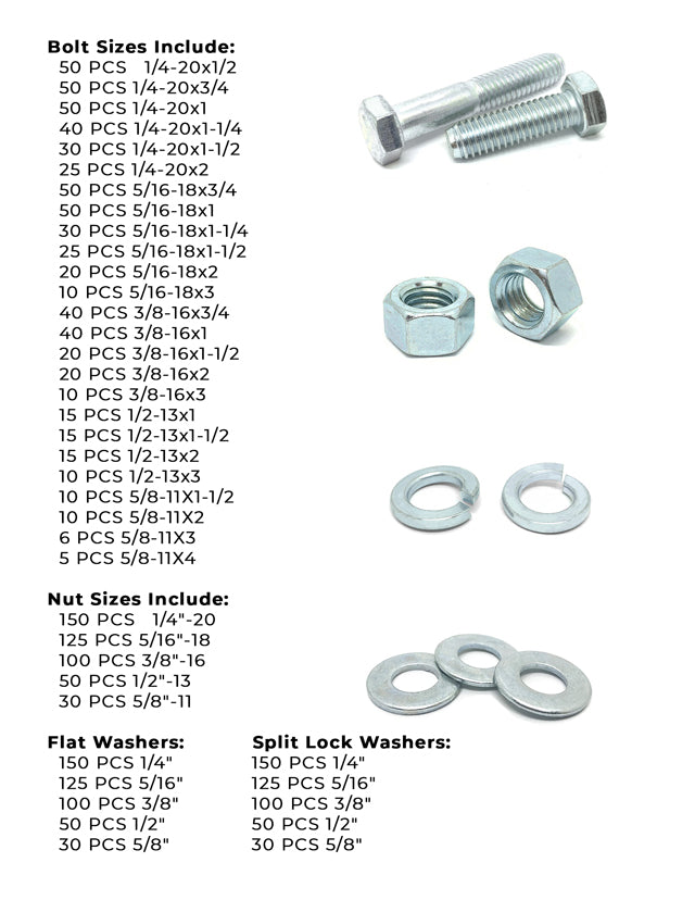 Inch Grade 5 Hex Cap Screws, Hex Nuts, Flat & Lock Washers - 2011 PCS