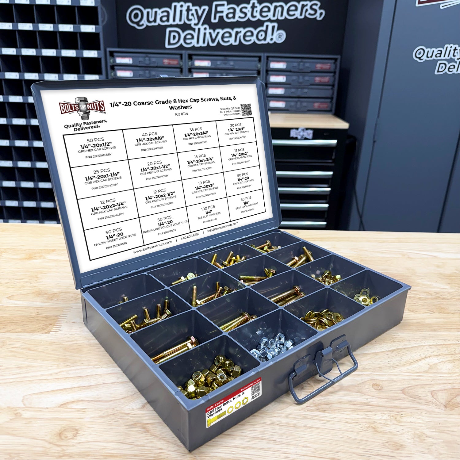1/4"-20 Coarse Grade 8 Hex Cap Screws, Nuts, & Washers - 575 PCS