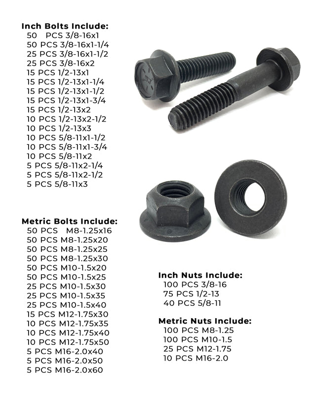 Inch & Metric Grade 8 / Class 10.9 Flange Bolt & Lock Nut Kit - 1176 PCS