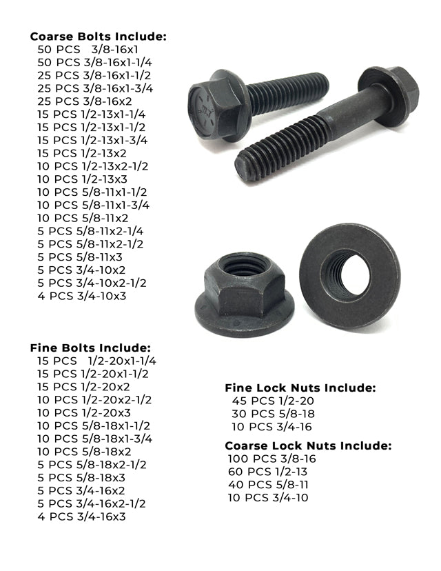 Inch Grade 8 Coarse & Fine Thread Hex Flange Bolt & Lock Nut Kit - 729 PCS