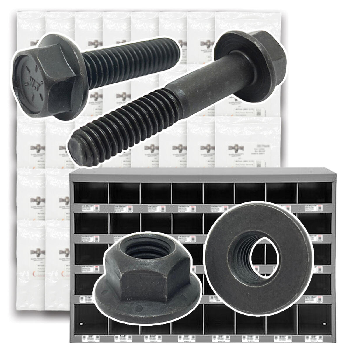 Grade 8 Coarse & Fine Thread Hex Flange Bolt and Lock Nut Kit w/ 40 Hole Bin
