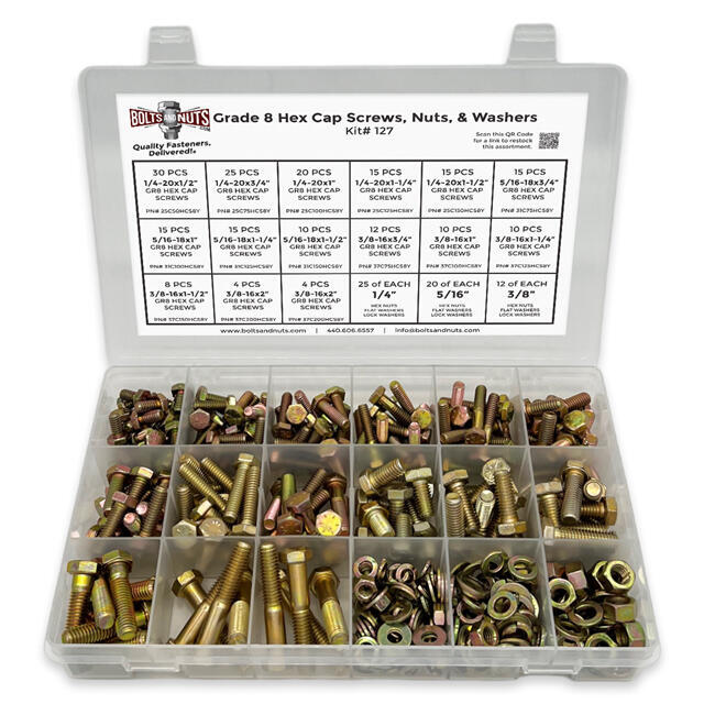 Inch Grade 8 Hex Cap Screws, Hex Nuts, Flat & Lock Washers - 380 PCS