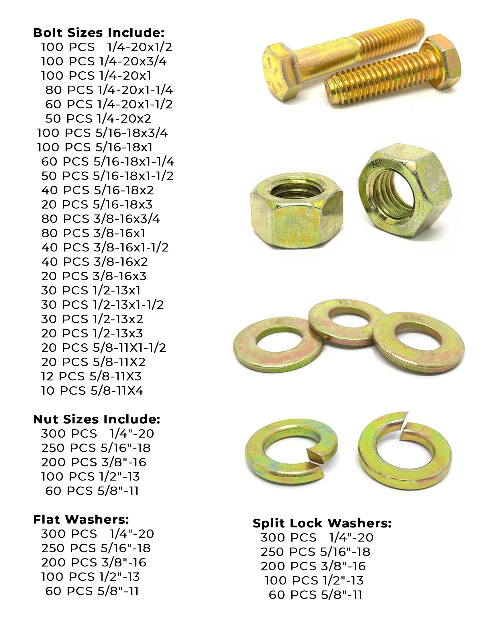 Inch Grade 8 Hex Cap Screws, Hex Nuts, Flat & Lock Washers - 4022 PCS