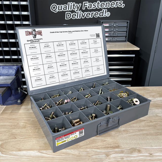 Part Number: Assortment Kit #157 1269 Pieces - Fine Thread Bolt Information: Nut Information: Washers Information: Container Information: *Please note the container will ship & arrive separately from the fasteners.