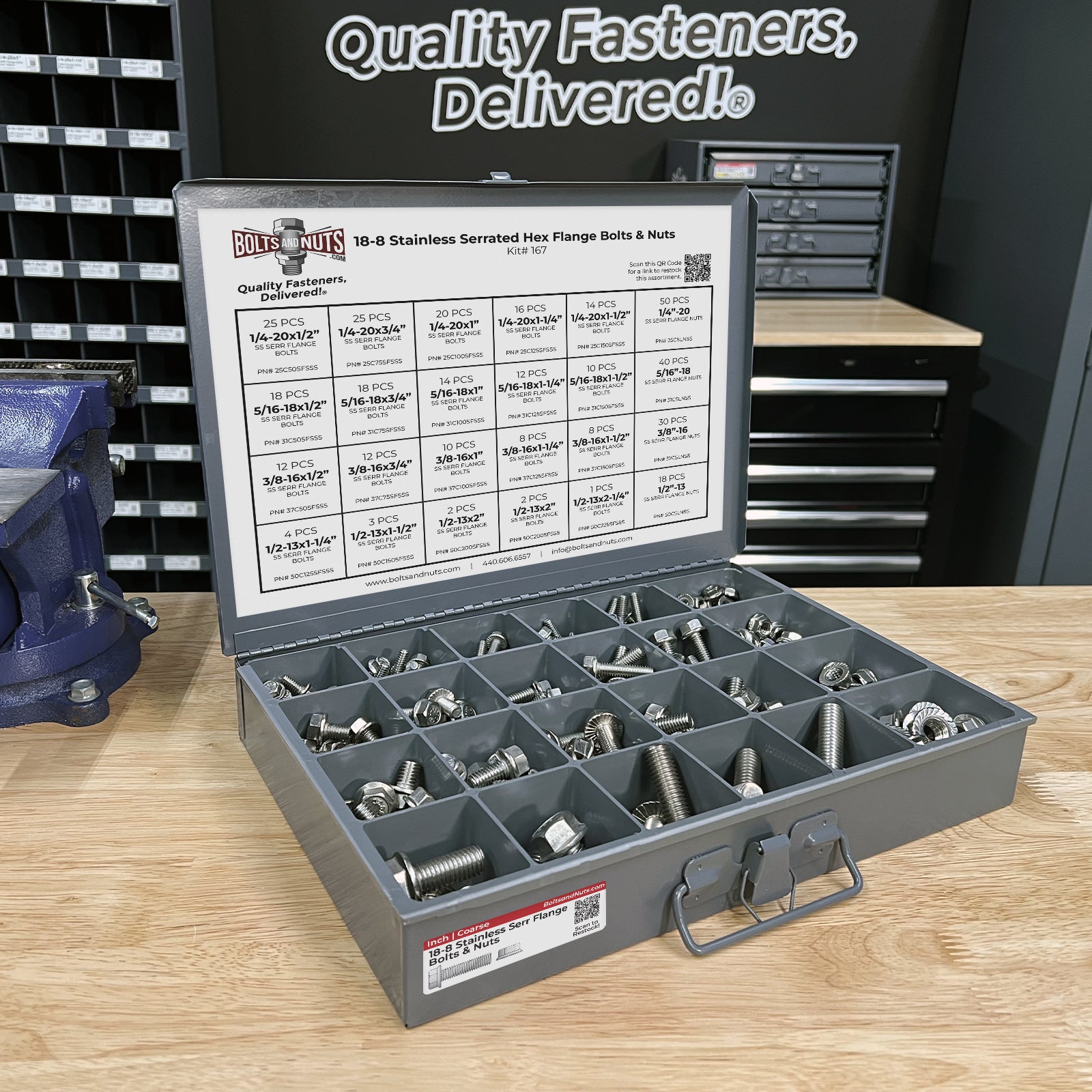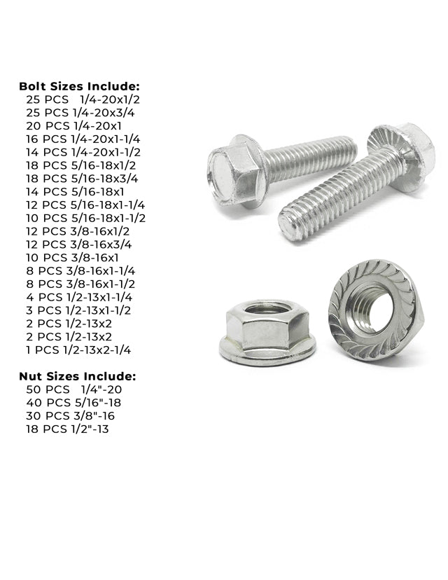 Inch Stainless Steel Serrated Hex Flange Bolts & Lock Nuts Assortment - 371 PCS