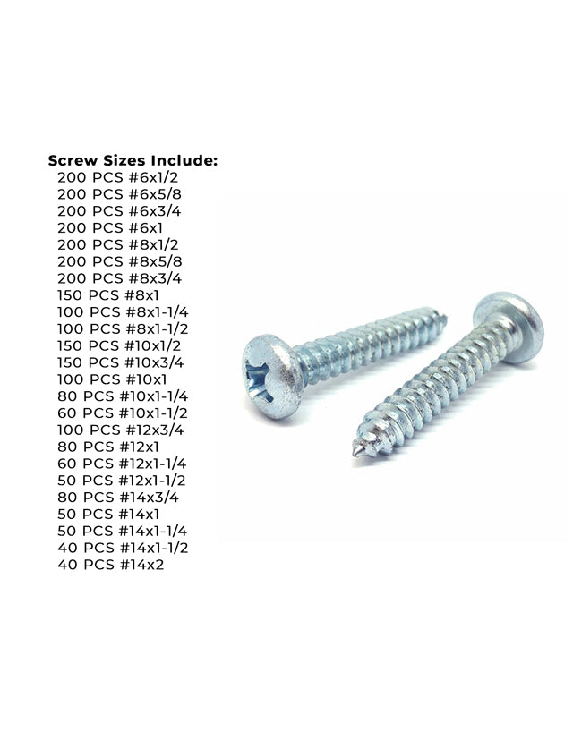 Phillips Pan Head Sheet Metal Self Tapping Screws Assortment - 2841 PCS