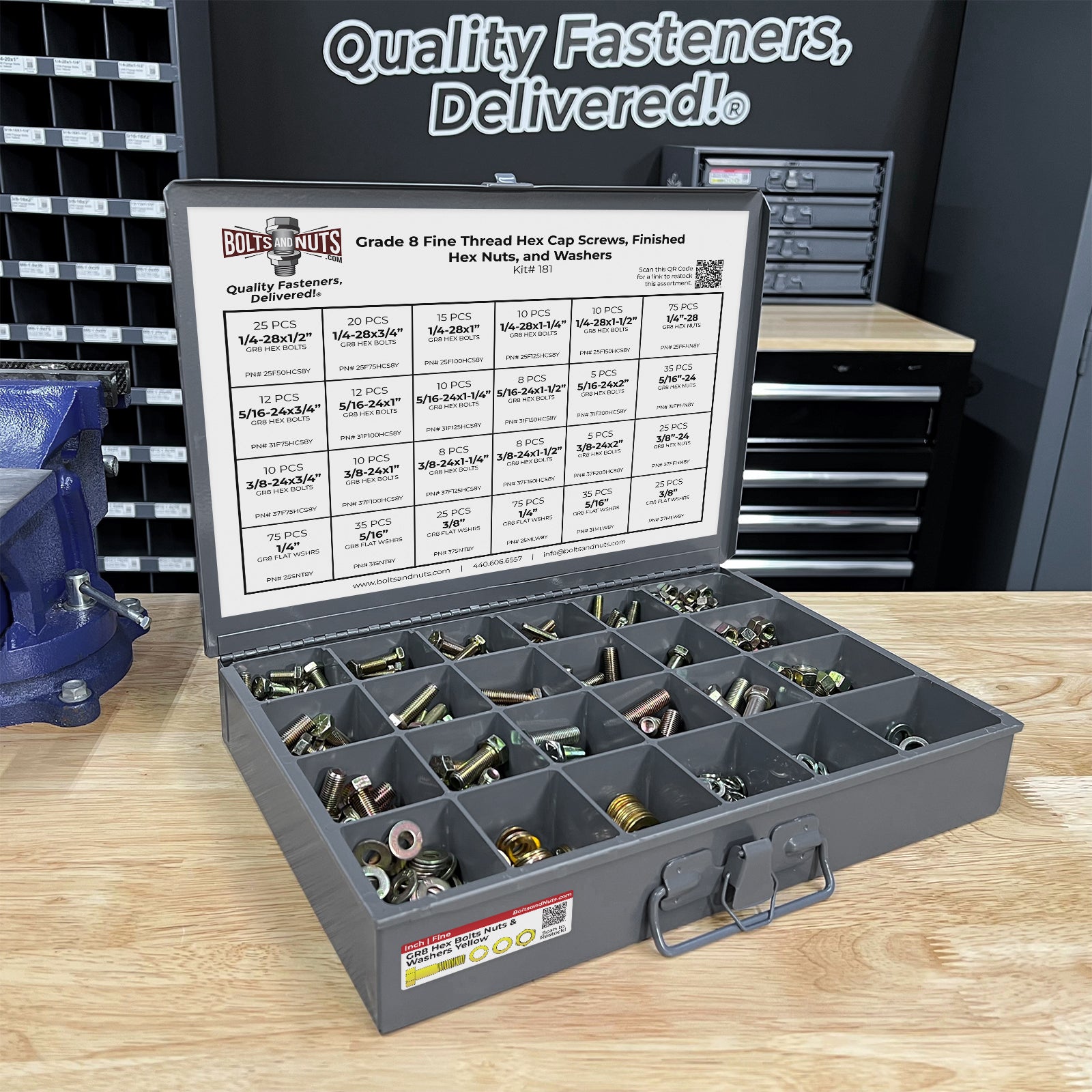 Inch Grade 8 Fine Hex Cap Screws, Hex Nuts, Flat & Lock Washers - 574 PCS