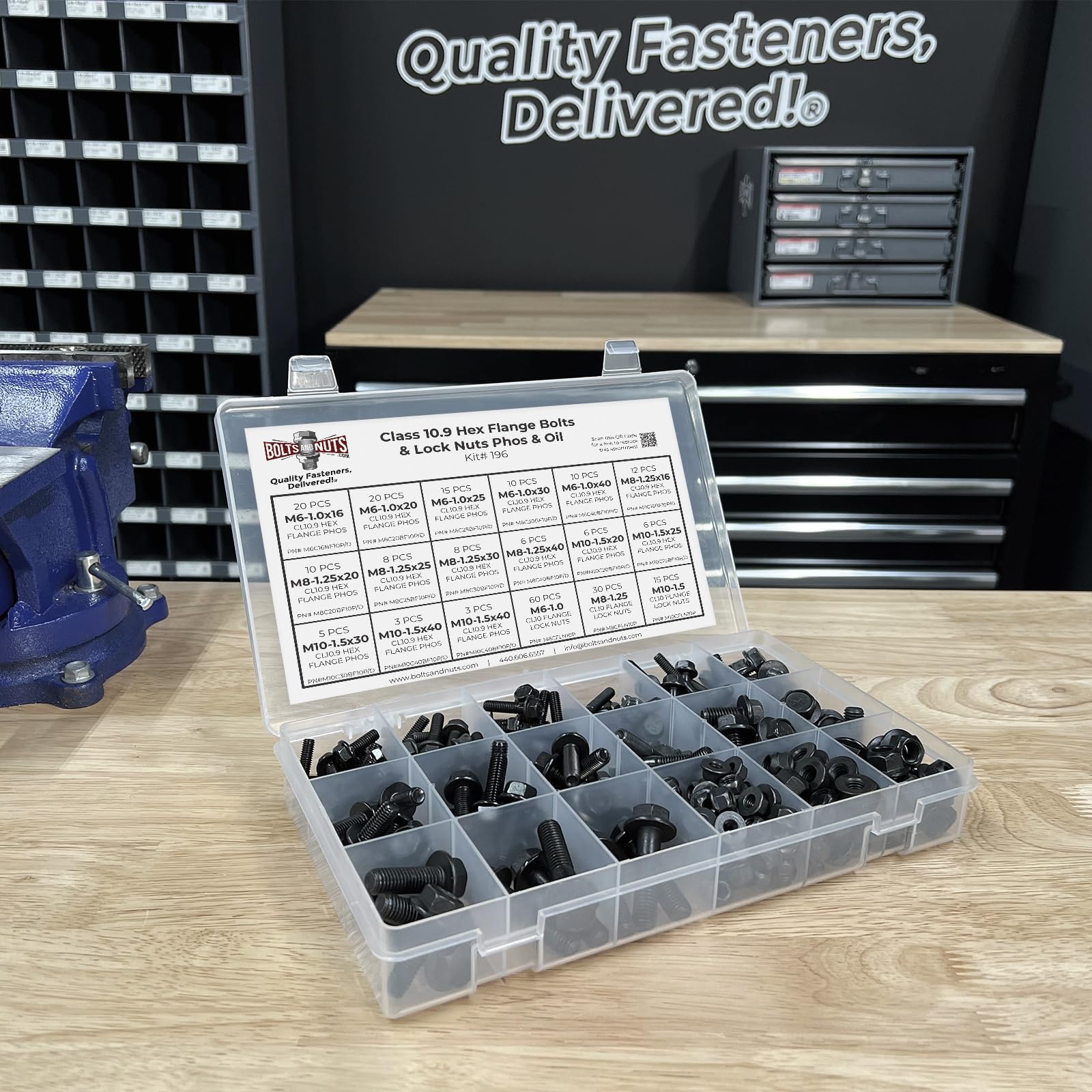 Metric Class 10.9 Hex Flange Bolts & Lock Nuts Assortment - 248 PCS