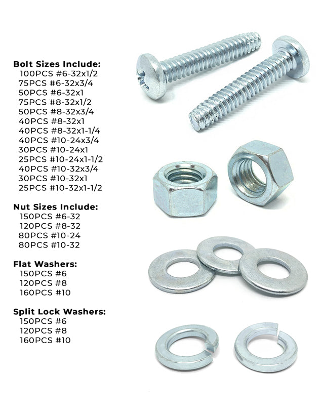 Inch Phillips Pan Head Machine Screws, Hex Nuts, Flat & Lock Washers - 1921 PCS