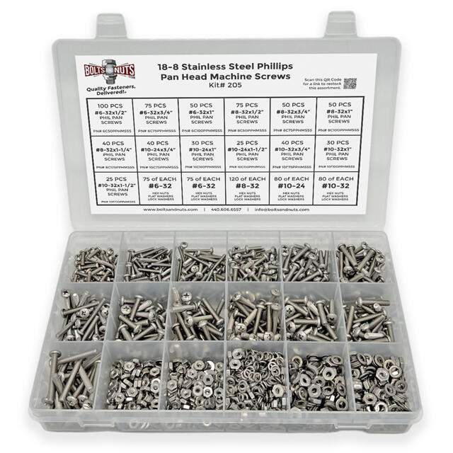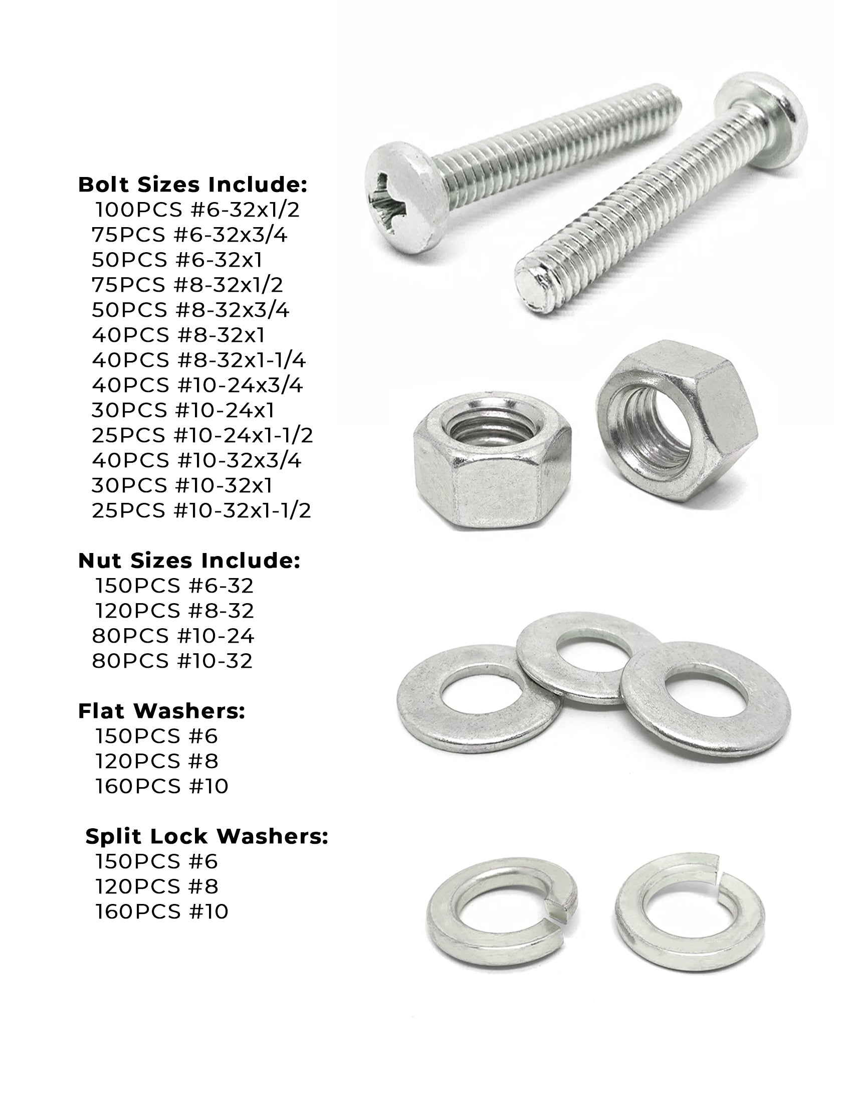 Inch Stainless Steel Phillips Pan Head Machine Screws, Hex Nuts, Flat & Lock Washers - 1921 PCS