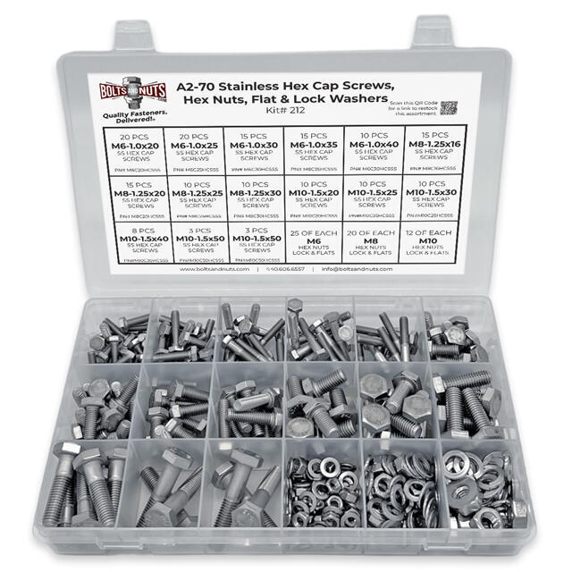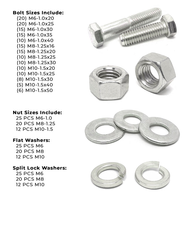 Metric A2 Stainless Steel Hex Cap Screws, Hex Nuts, Flat & Lock Washers - 341 PCS