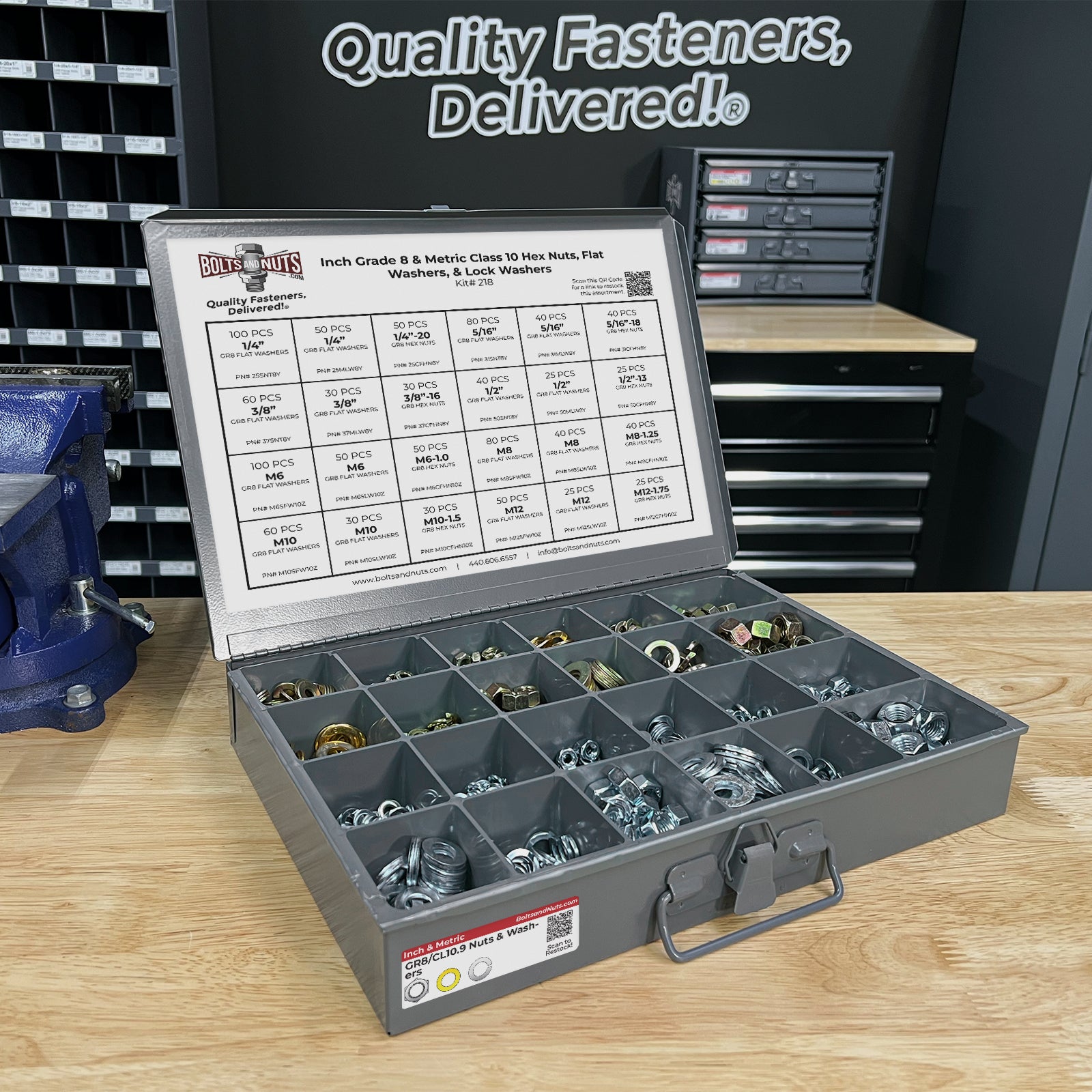 Inch & Metric Grade 8 Hex Nut, Flat & Lock Washer Assortment - 1151 PCS