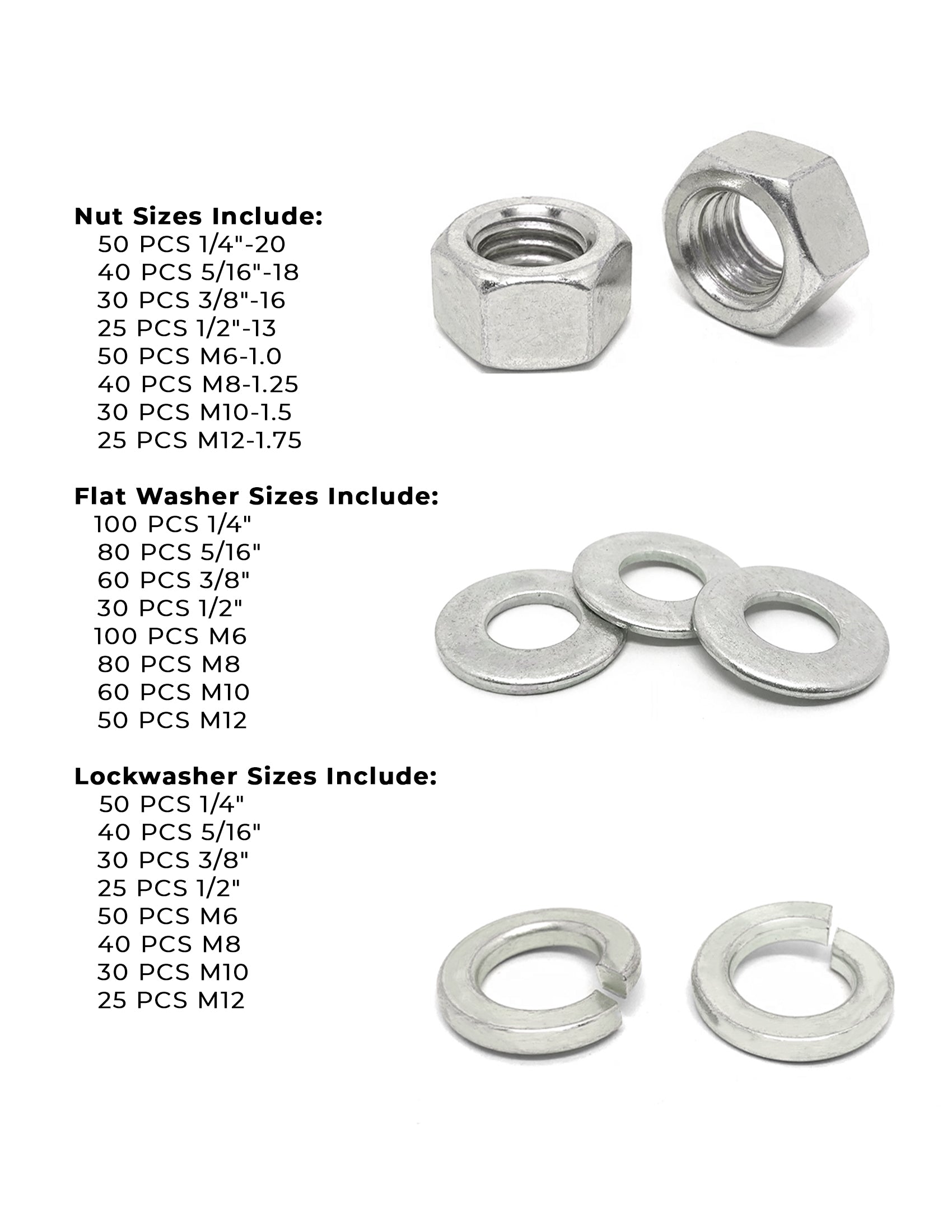 Inch & Metric Stainless Steel Hex Nut, Lock Washer and Flat Washer Assortment - 1141 PCS