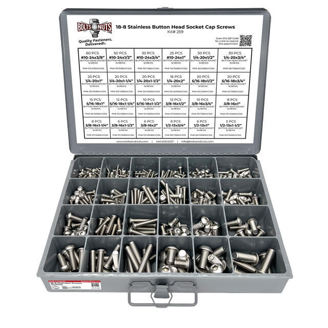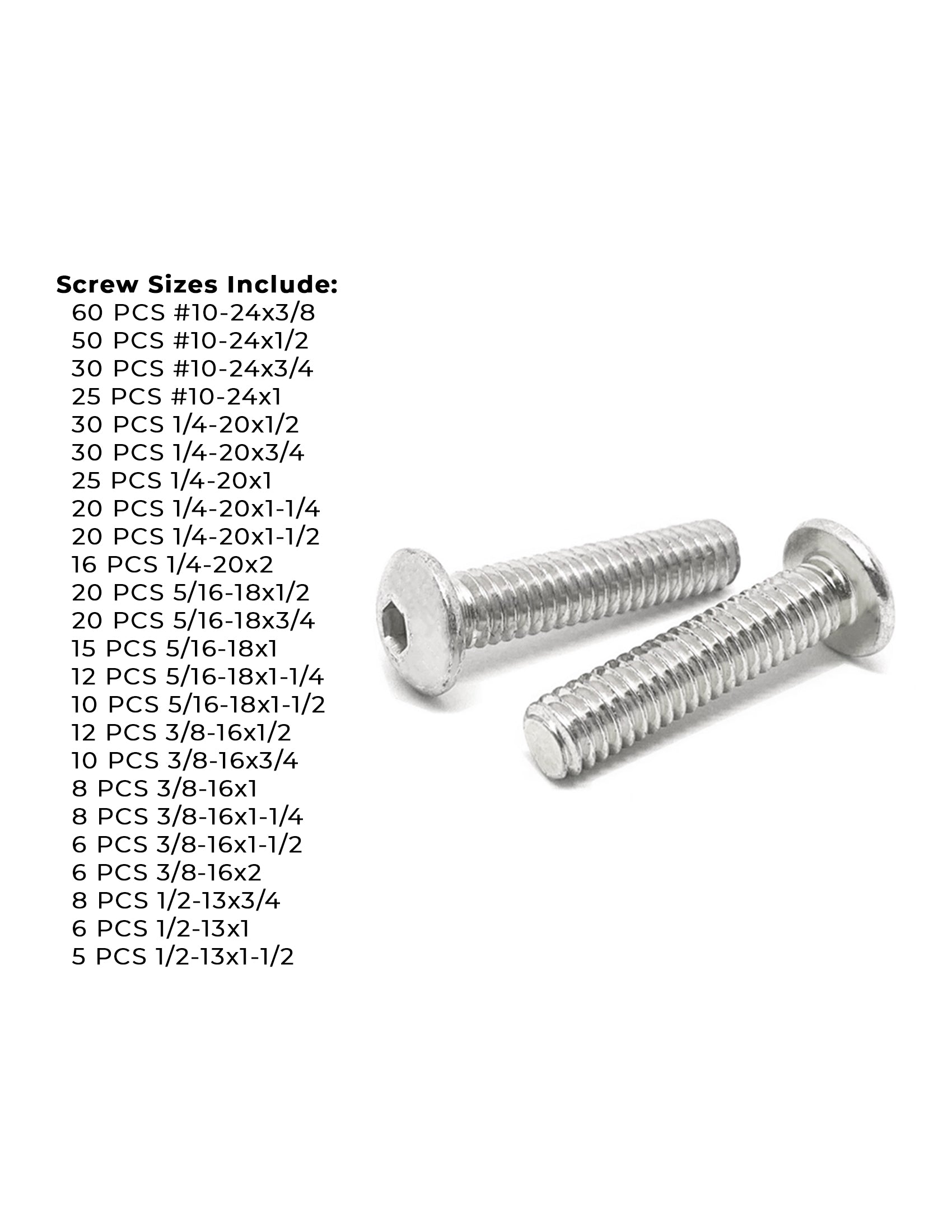 Inch 18-8 Stainless Steel Allen Button Head Socket Cap Screws Bolts Assortment - 453 PCS