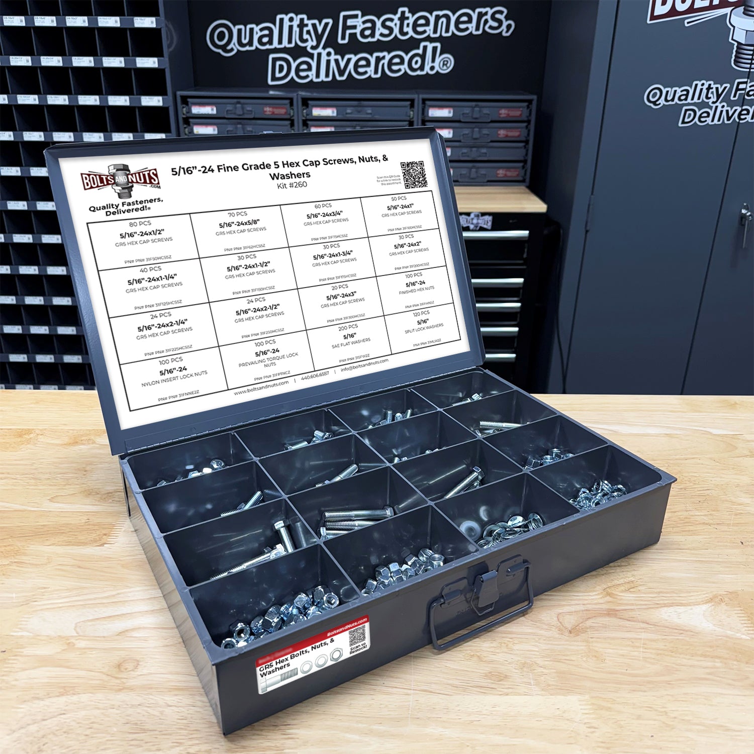 5/16"-24 Fine Grade 5 Hex Cap Screws, Nuts, & Washers - 1079 PCS