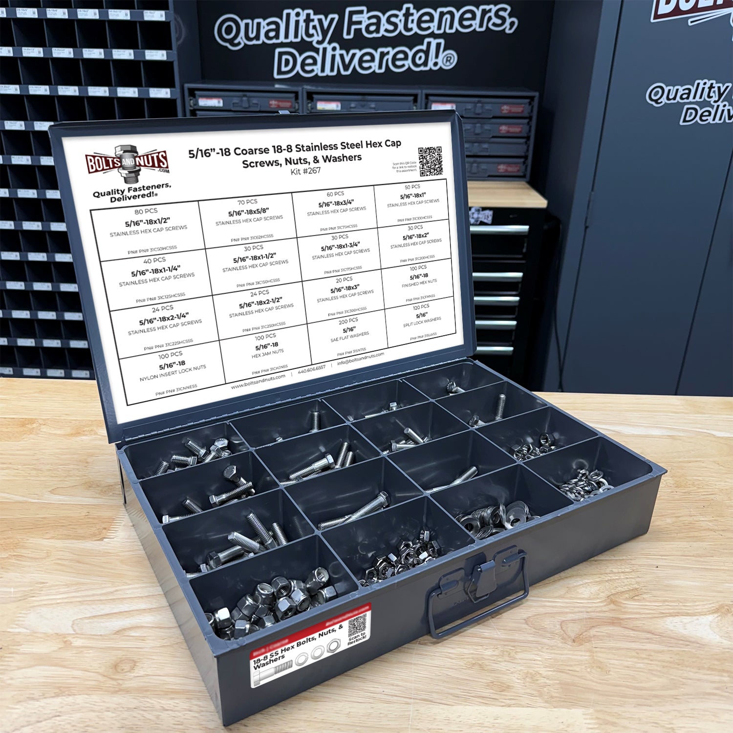 5/16"-18 Coarse 18-8 Stainless Steel Hex Cap Screws, Nuts, & Washers - 1079 PCS