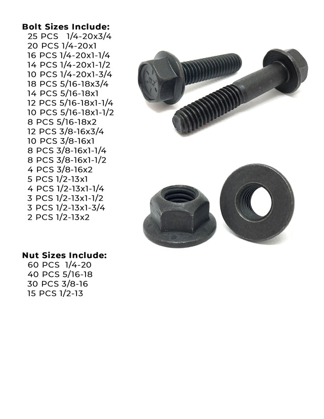 Inch Grade 8 Hex Flange Frame Bolts & Lock Nuts Black Assortment - 351 PCS