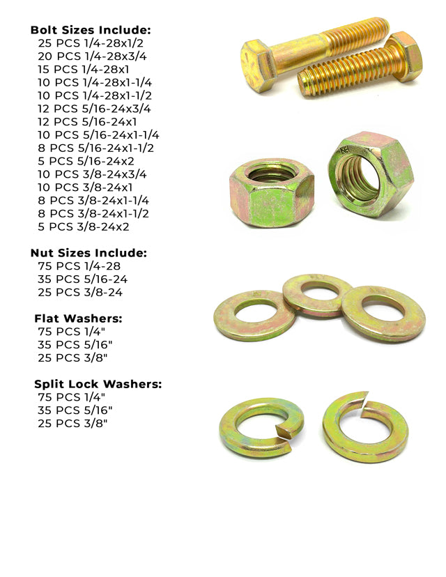 Inch Grade 8 Fine Hex Cap Screws, Hex Nuts, Flat & Lock Washers - 573 PCS